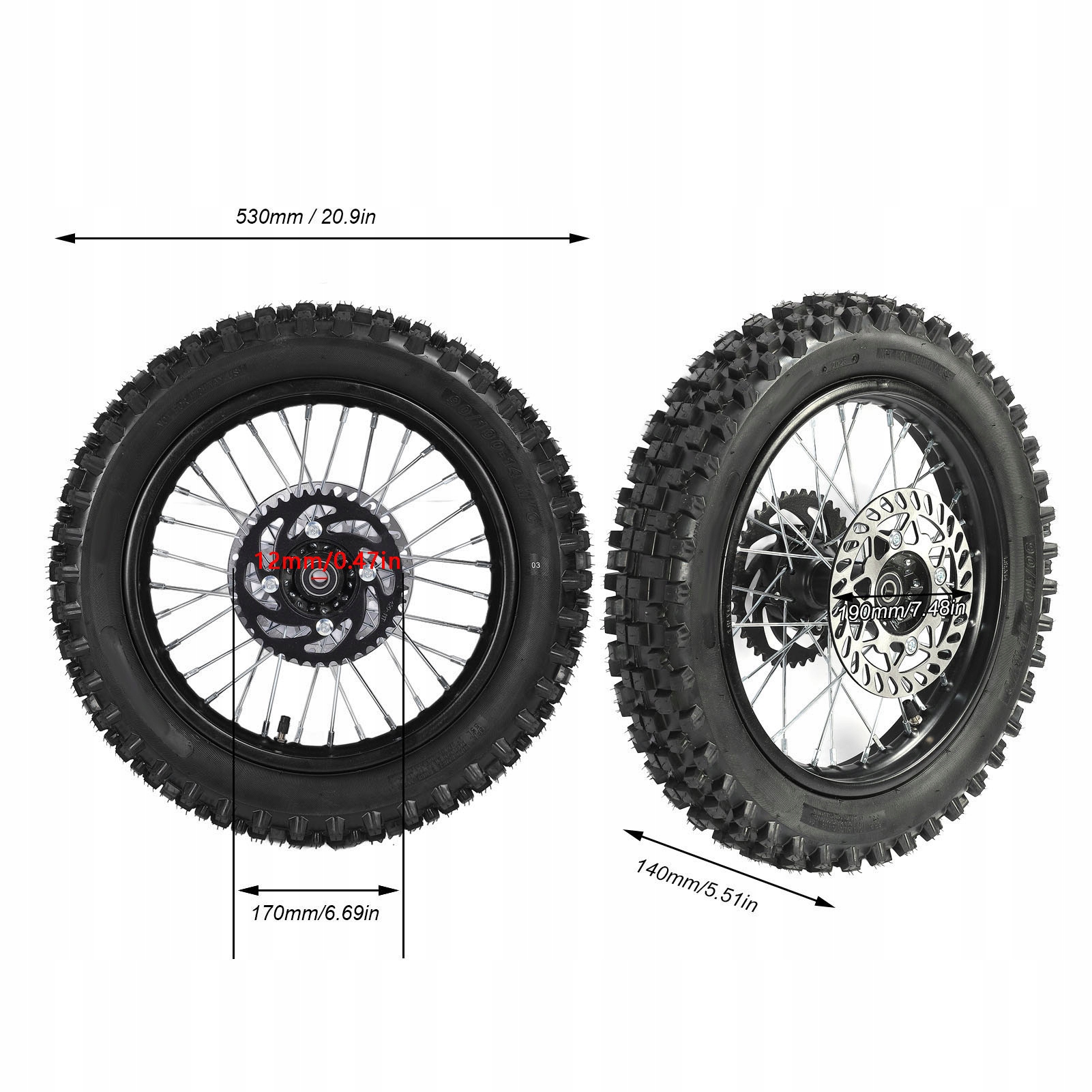 - Діаметр отвору для осі: 12 мм / 0,47 дюйма