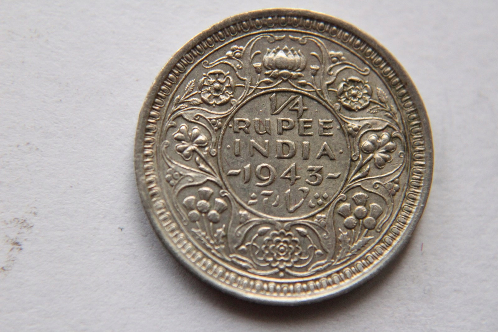 1/4 РУПІЯ 1943 ІНДІЙСЬКЕ СРІБЛО - (J35