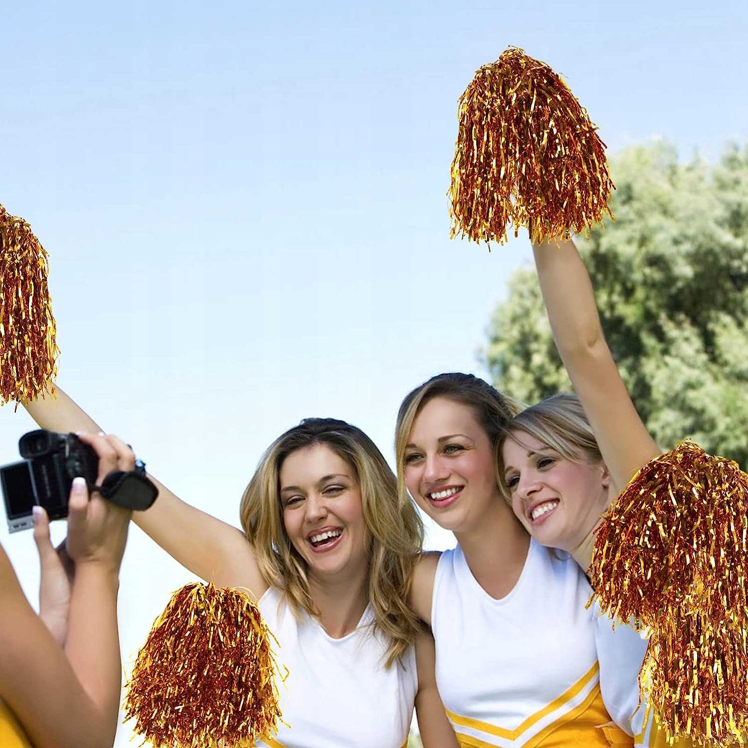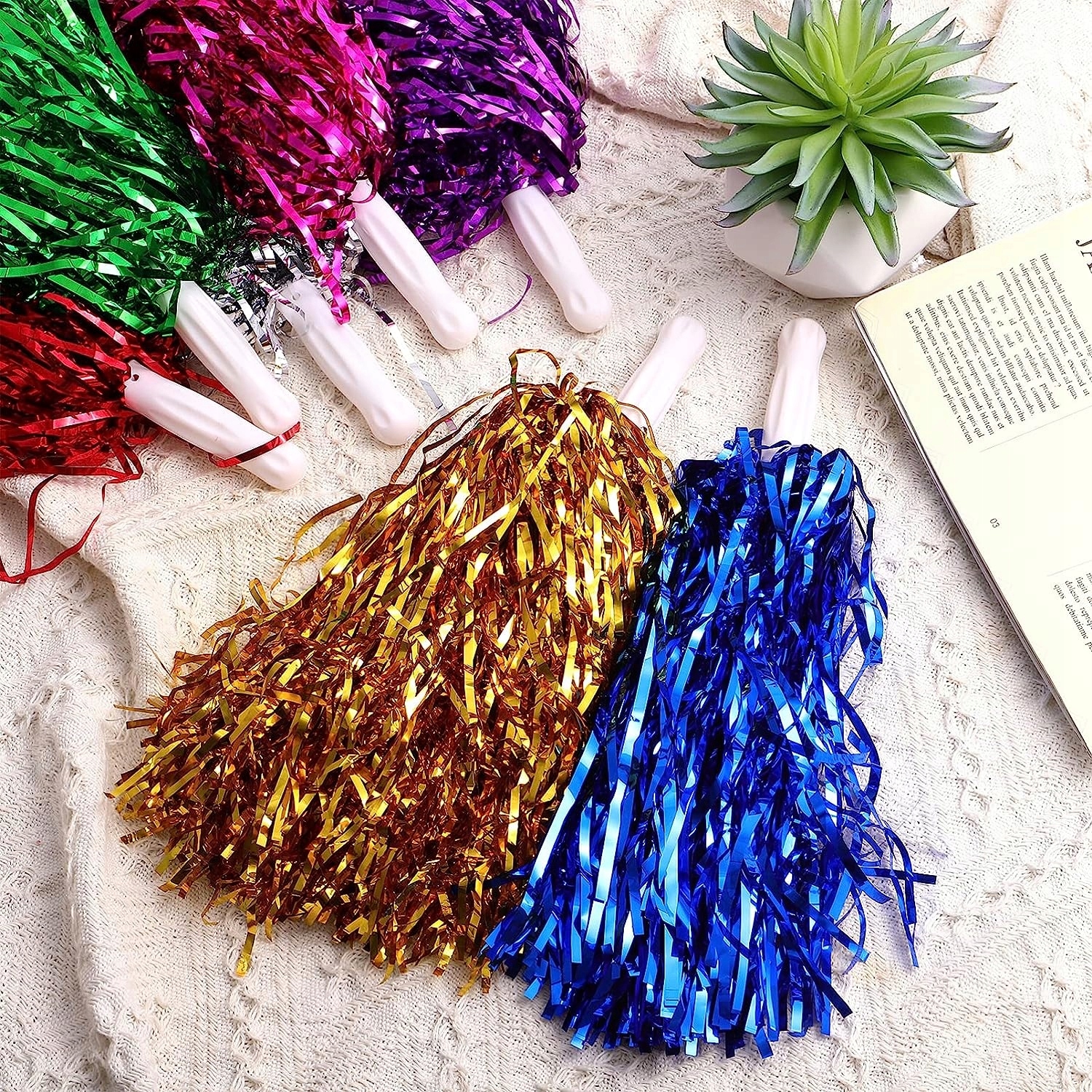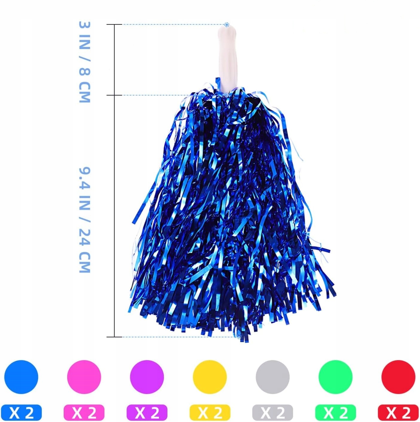 Cheer Poms виготовлені з міцних матеріалів, які легко носити. Вони допомагають уболівальникам на полі. Виготовлений із пластику та металевої фольги, безпечний, добре виготовлений і міцний.