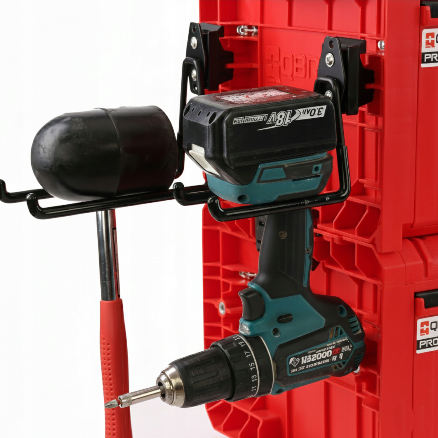 Цей набір універсальних гачків для пляшок для інструментів, призначених для ящиків для інструментів у системі Qbrick, є ідеальним рішенням для оптимізації простору, поєднуючи міцну конструкцію з практичними захисними функціями.