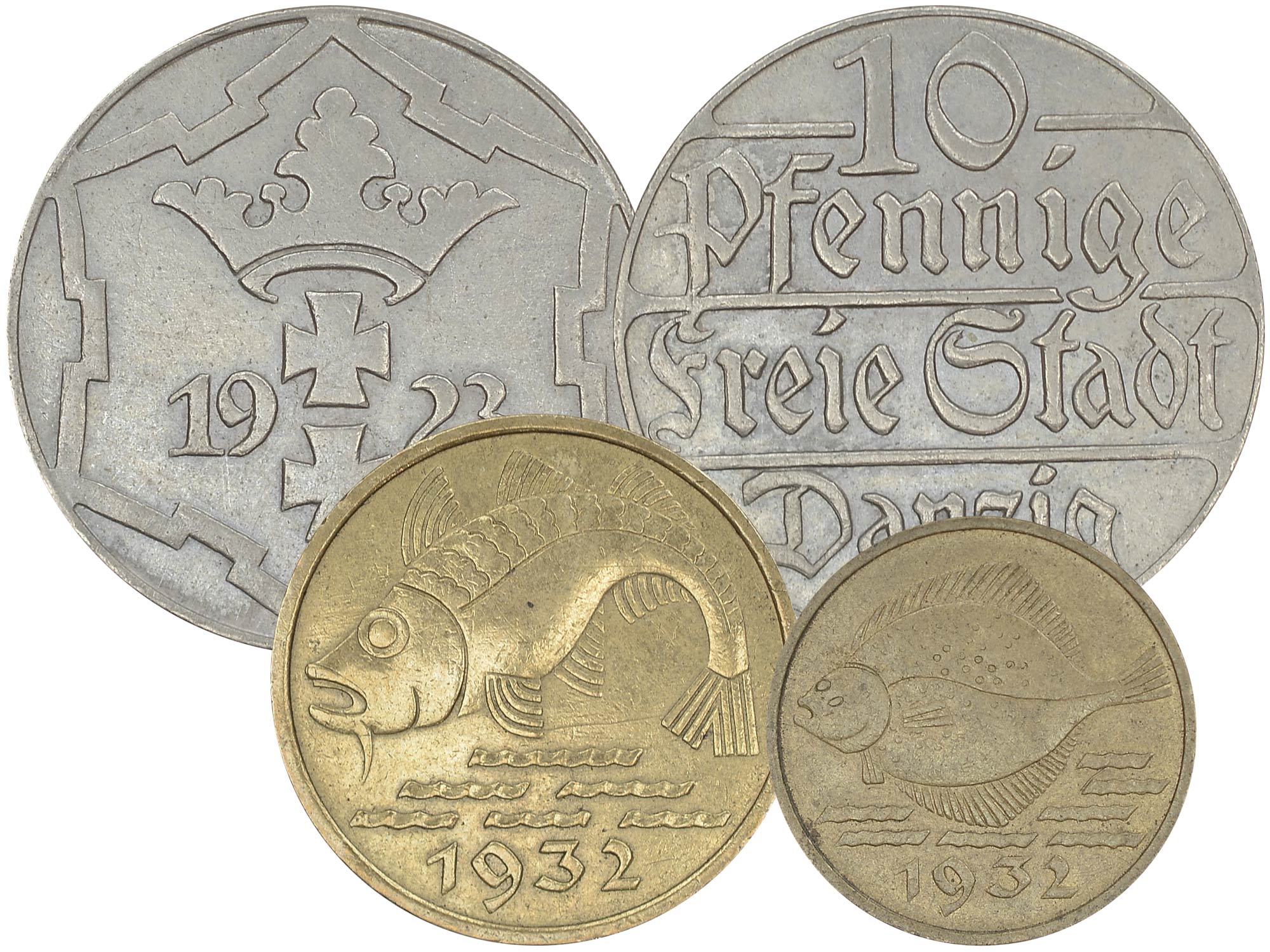 - Опис: У набір входять монети номіналом: 5 фенігів 1932 р. Камбала; 10 фенігів 1923, 1932 Код.