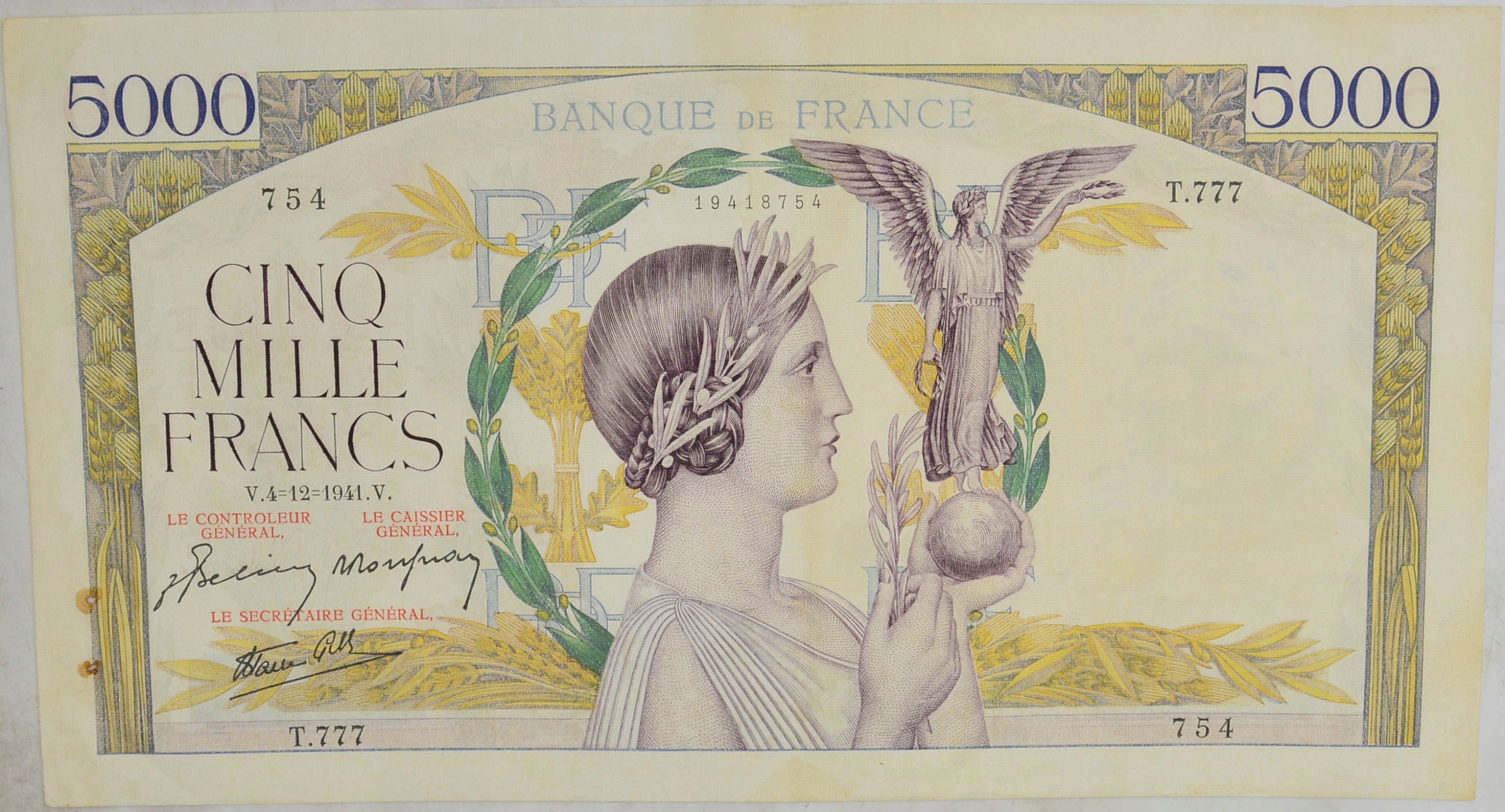 14.db.Francja , 5 000 франків 1941 р. рідко, St.2/3+