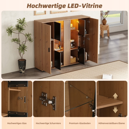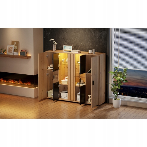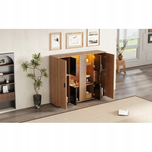 140*35*113 см бічний шафа для вітальні, Салон Земля з видом з структурою перегородки та регульованими стінами перегородки, Чорним сервісом + кольором деревини та 4 дверями