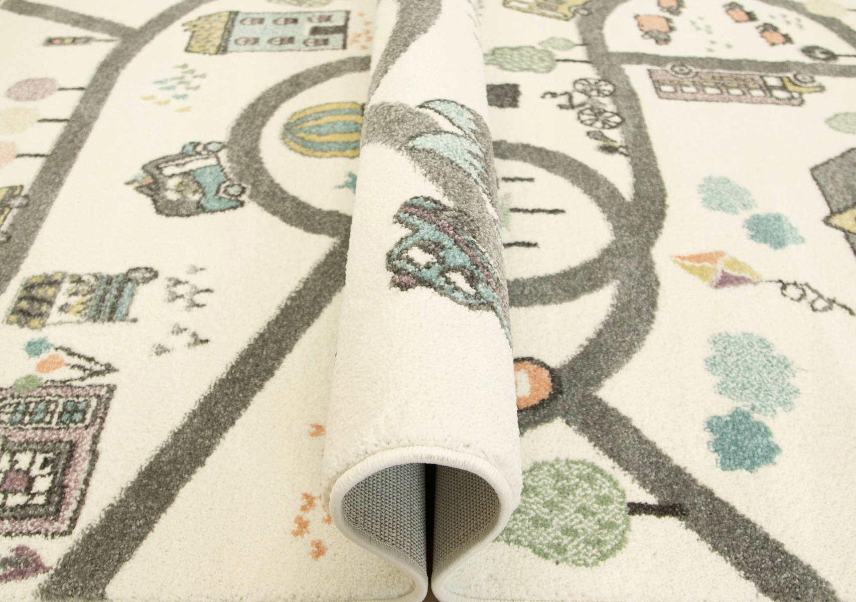 Колекція LIMA включає килими, розроблені з думкою про наймолодших - солодкі візерунки та цікаві кольори створюють прекрасний фліс, який сподобається кожній дитині! Килим в дитячій кімнаті виконує багато функцій - він теплоізолює, дає місце для ігор і прикрашає інтер'єр. Представлений килим прикрашений мультяшним малюнком вулиць, машин і будинків. Кольори, які використовуються для створення візерунка, включають пастельні сірі, кремові, зелені, бірюзові, рожеві, жовті та фіолетові.
