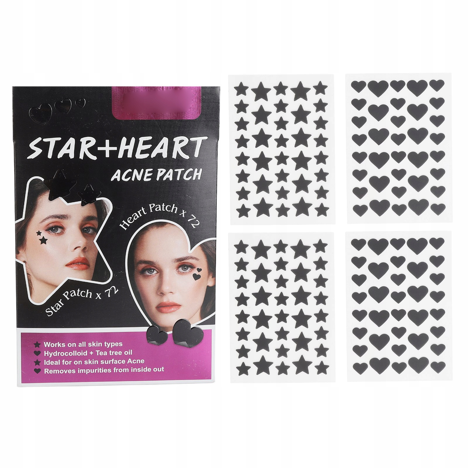 144 PLATHES Hydrocolloid Pimple Cover Patch Black Star Heart W4