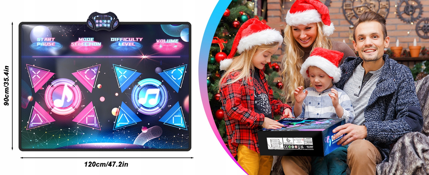 Наші танцювальні килимки вимагають 3 батарейних батарей - не входять до набору, це ідеальний подарунок для дітей віком від 3, 4, 6, 7 та 8 років. Подвійний режим для дружньої конкуренції, насолоджуйтесь конкуренцією з друзями, братами та сестрами та сім'ями, це додатково весело! Це покращує стосунки батько-дитина та дружба дітей, прості та прості. Індикатор загоряється, починає гру виклику, торкайтеся або ходити на відповідний візерунок. Нехай ваші дівчата краще показують ваші переваги на світиться танцювальним столом. дуже великий розмір 120 х 95 см, це безпечна і надійна іграшка у вигляді танцювального килима . День народження . Діти можуть не тільки розважитися, танцювати, але й розвивати обізнаність за допомогою музичної взаємодії.