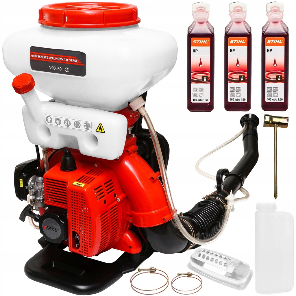 Паливний обприскувач Verke — це корисний і ефективний пристрій для захисту рослин від хвороб і шкідників, ідеальний для плантацій, орних полів, садів і парків. Прилад оснащений практичним механізмом, що дозволяє швидко переобладнати розпилювач, який можна використовувати не тільки для нанесення рідких речовин, але і для гранулятів. Прилад можна використовувати як повітродувку без необхідності купувати додаткові аксесуари. Бак об’ємом 14 л забезпечує безперервну та ефективну роботу, а великий впускний отвір полегшує наповнення баку. Великий діапазон обприскувача 12 м дозволяє обприскувати навіть найдальші рослини, до яких ручний обприскувач не матиме доступу. Обприскувач оснащений зручною системою перенесення, що робить розподіл ваги комфортним для оператора. За кожен придбаний обприскувач 3 x 100 мл масла STIHL безкоштовно!!!