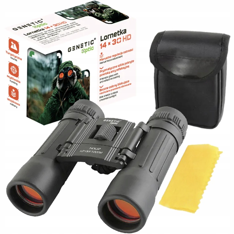 Відмінна видимість у компактній формі - брошура біну 14x30 HD від генетичної оптики! 4 - ідеальний інструмент для кожного любителя туризму, полювання, спостереження за природою чи спортом. Забезпечує 14 разів збільшення , і завдяки високоякісній скляній оптиці, широких лінзах та спеціальних покриттів, це гарантує ідеальне, кристально чисте зображення у будь-яких умовах.