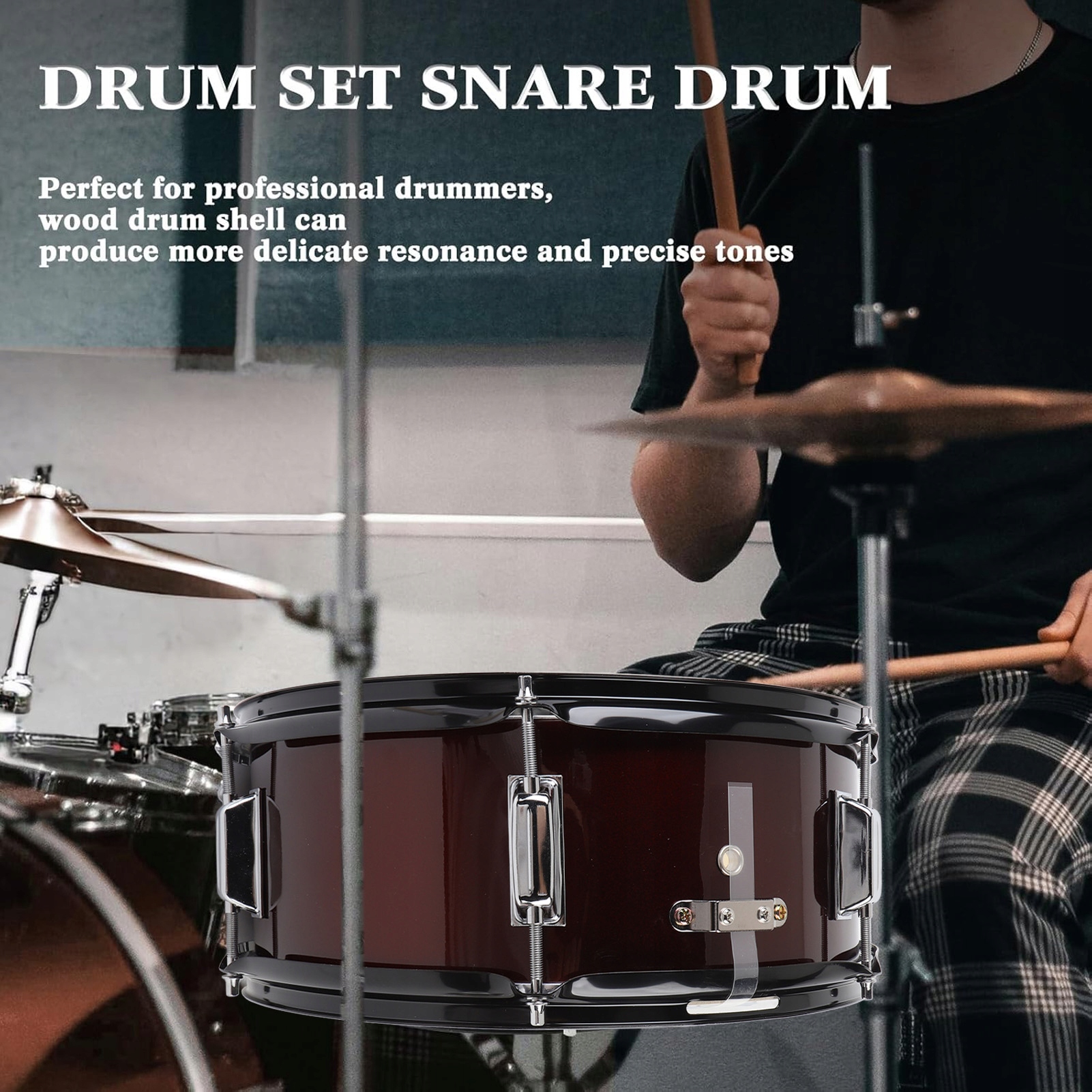 Функція: 1. Універсальний для всіх музикантів: підходить для барабанщиків будь -якого рівня, особливо професіоналів, цей барабан 14x5.5 -дюйм вписується в широкий спектр музичних додатків з його сильним, потужним звучанням.