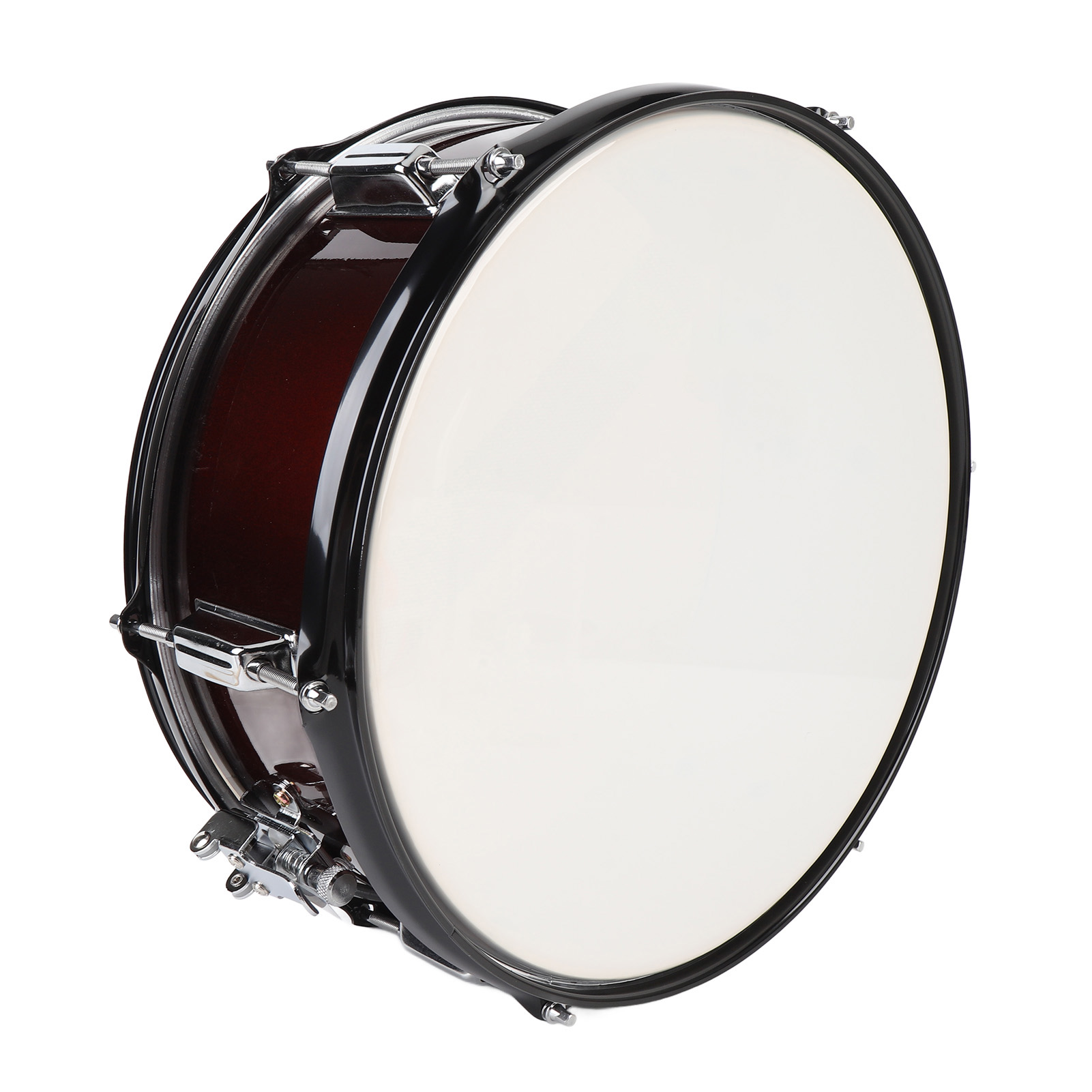 4. Металева оболонка: виготовлена з красиво покритої червоної кори, цей барабан пропонує теплі резонансні відтінки. Затиск металевої оболонки та 6 виступів забезпечує міцні та теплі звуки ободів.