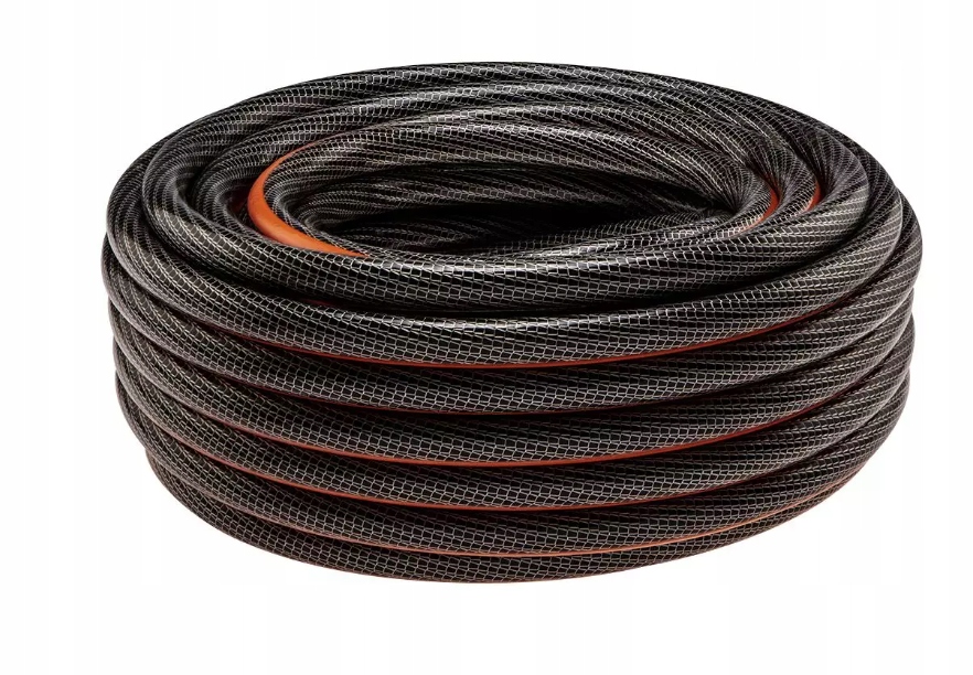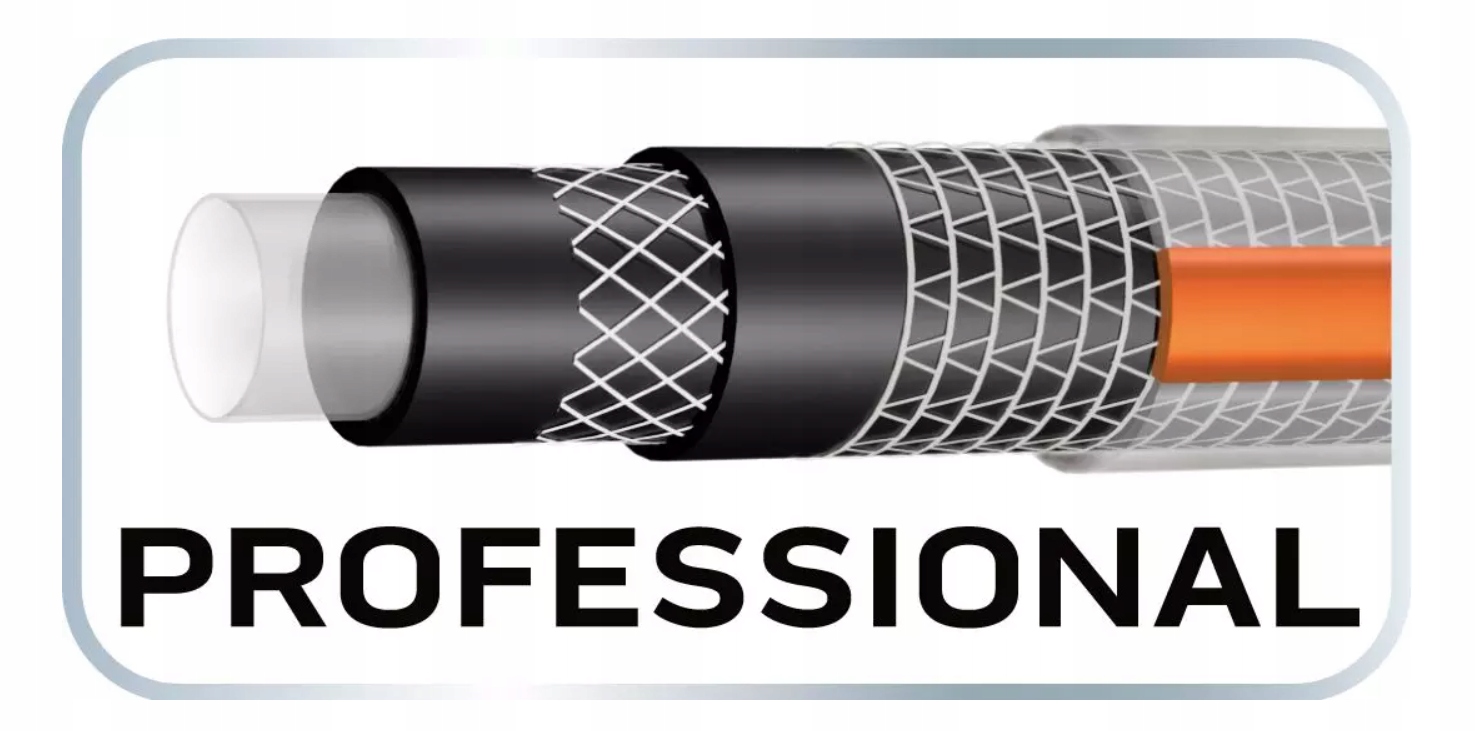 6-шаровий садовий шланг з гнучкого ПВХ, армованого поліефірною ниткою, з двома обплетеннями (хрестоподібне та трикотажне). Він ідеально підходить для догляду за малими та великими садовими ділянками, включаючи чищення меблів та інструментів, які використовуються на вулиці, незалежно від пори року. Стійкий до відкладення водоростей і УФ-променів і підходить для контакту з їжею завдяки шару Food Safe. Комфортний у використанні завдяки системі проти скручування