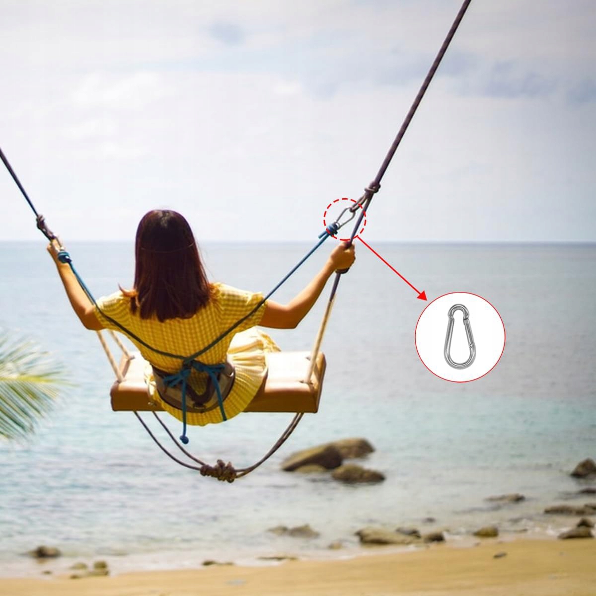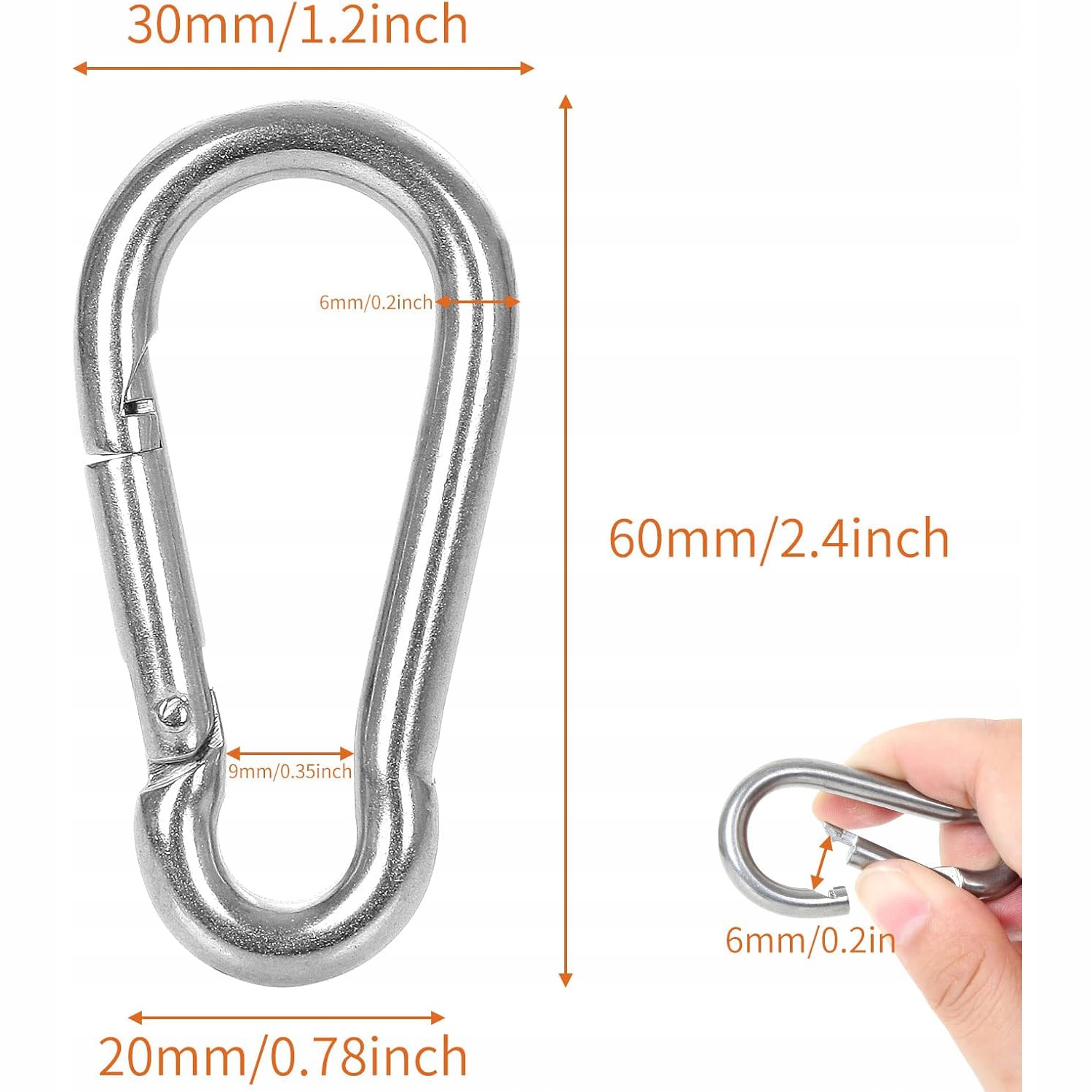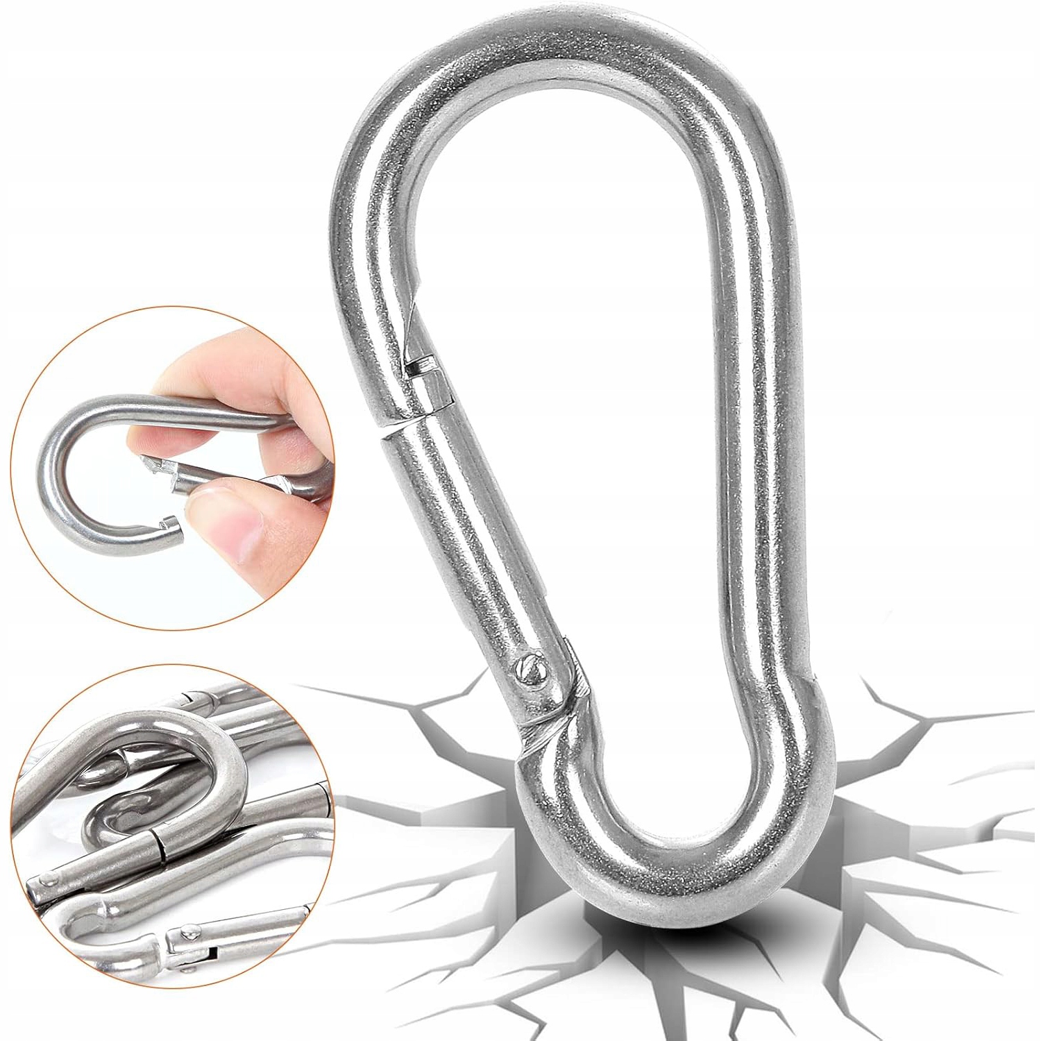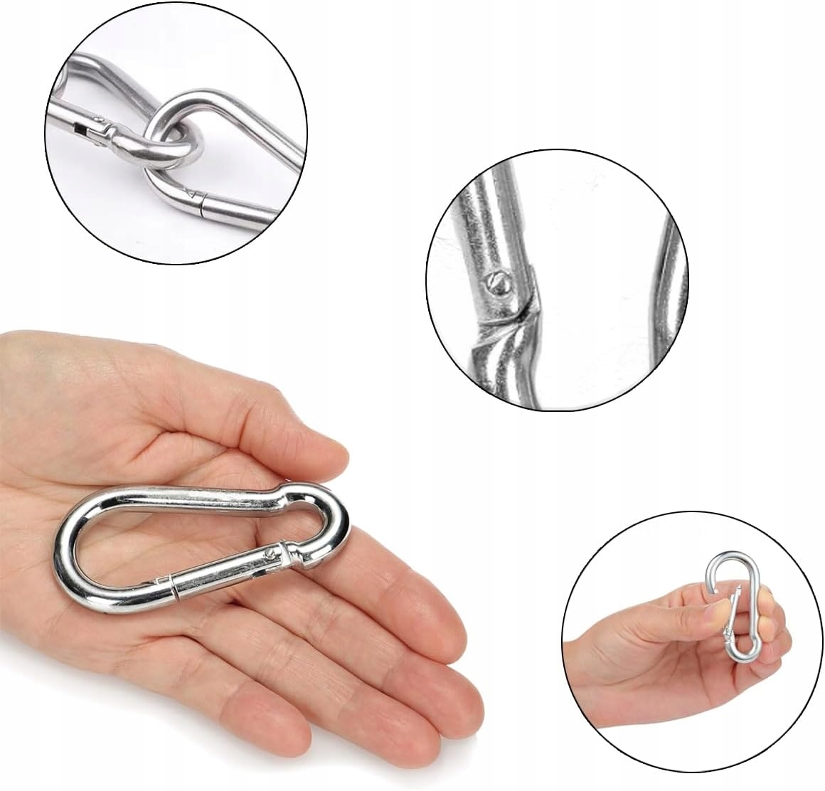 🔗🔗 розмір - загальна довжина прибл. 60 мм і товщина близько 6 мм, карабін може витримувати максимальне навантаження близько 120 кг і є хорошою ланкою, що з'єднується в багатьох випадках.