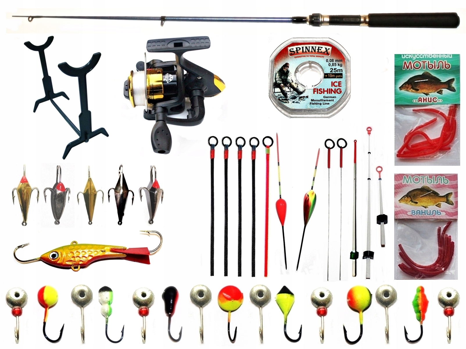 15 х МОРМИШКА + ПІДЛІДНА ВУДКА + КОТУШКА + ПІДСТАВКА + АКСЕСУАРИ - ЗИМА 4