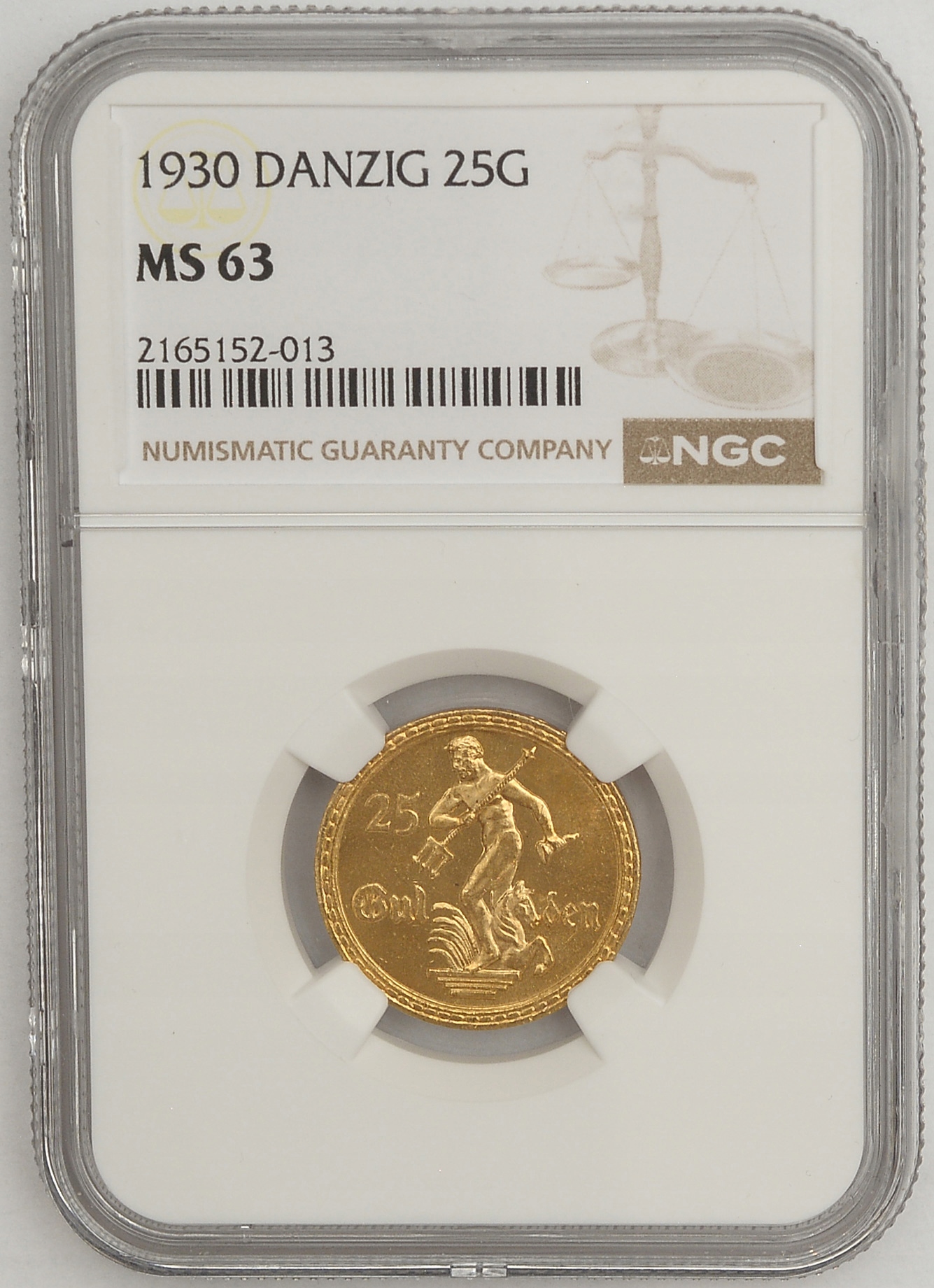 15.hf.WM ГДАНСЬК, 25 ГУЛЬДЕНІВ 1930 NEPTUN NGC MS63
