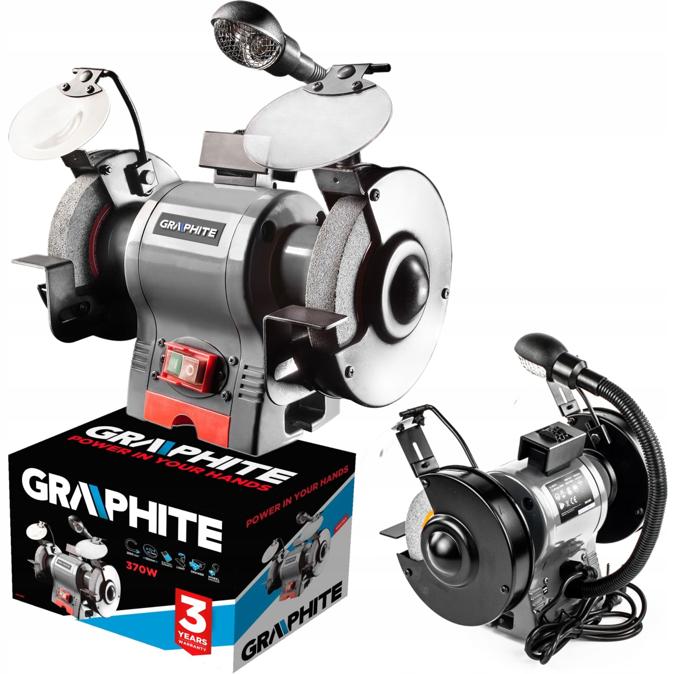 Настільна шліфувальна машина GRAPHITE (арт. 59G383) потужністю 370 Вт призначена для обробки матеріалів високої твердості. Максимальний діаметр шліфувальних дисків 150 мм. М'ясорубка оснащена асинхронним двигуном з мідною обмоткою. Має стійкий до пошкоджень і високих температур корпус з алюмінієвого сплаву. Апарат оснащений перемикачем з магнітною опорою і пристроєм для вирівнювання робочої поверхні шліфувального диска. Максимальна швидкість обертання диска без навантаження становить 2950 об/хв. Крім того, шліфувальна машина оснащена багатопозиційним світлом, ящиком для охолоджуючої рідини та регульованими щитками для очей (лівий щиток із збільшувальним склом). Пристрій оснащений гнучким і міцним шнуром живлення з гумовим покриттям довжиною 2 м, також призначеним для професійного та промислового застосування як у приміщенні, так і на вулиці. У комплект з шліфувальною машиною входять: іскрові екрани, підставки для інструментів, пристрій для вирівнювання дисків і набір гвинтів, болтів і шайб. Відповідність європейським стандартам забезпечується сертифікатом CE.