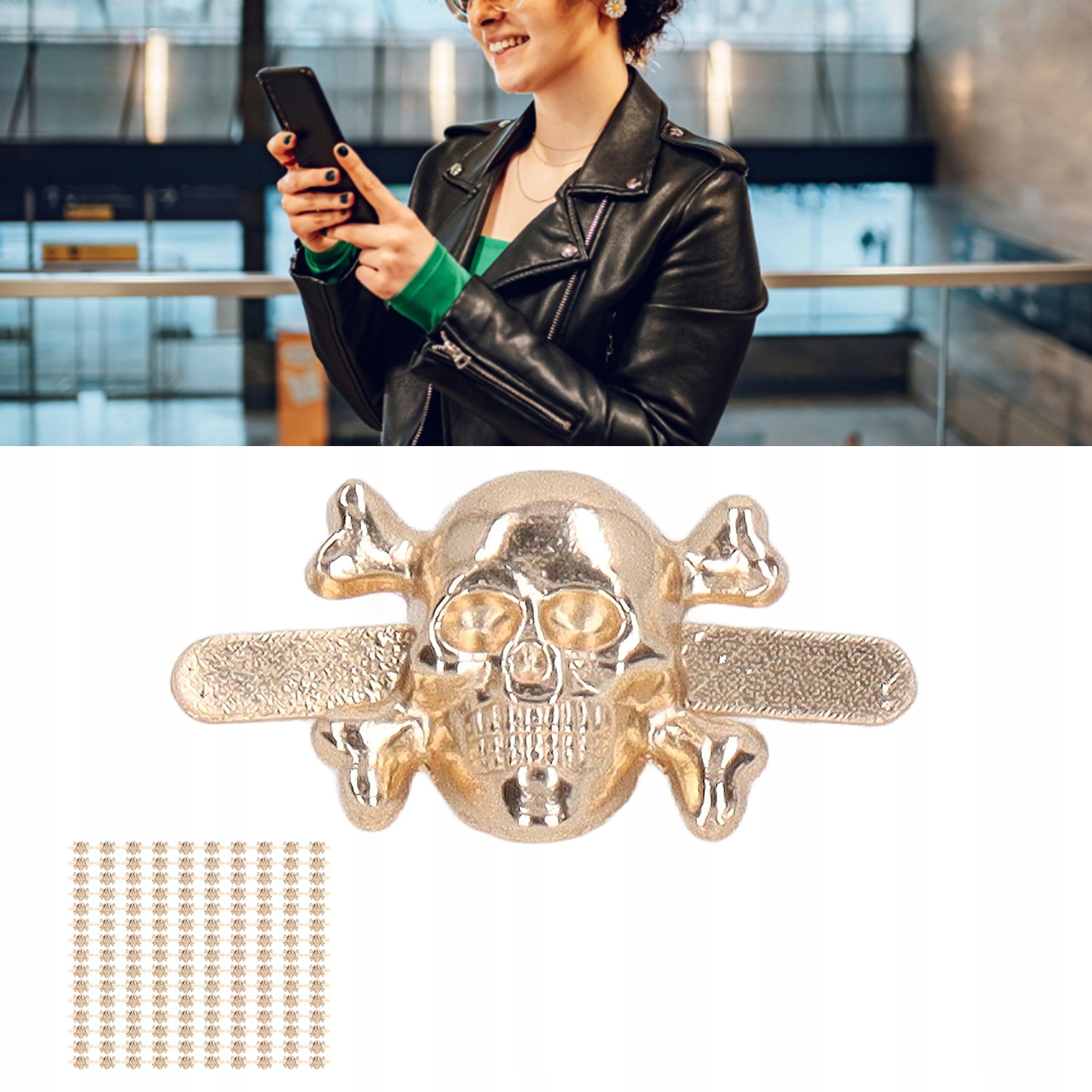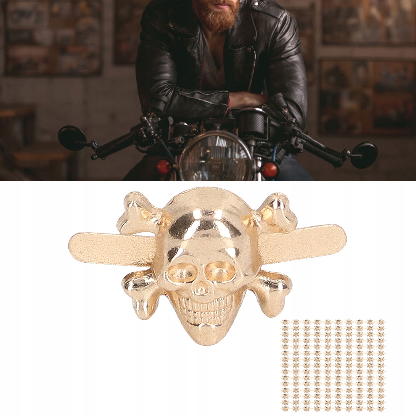 1. Поверхнева гальванічна обробка: використання вишуканої майстерності, поверхнева гальванічна обробка, красива та модна. 2. Матеріали найвищої якості: заклепки виготовлені зі сплаву цинку, міцні, довговічні, стійкі до іржі та корозії. 3. Форма черепа: стильні заклепки мають форму черепа, яка може повністю виразити ваш унікальний смак. 4. Широке застосування: підходить для виготовлення мистецтва, ремесел зі шкіри та виготовлення одягу, підходить для будь-якої індивідуальної роботи зі шкіри та ремесел зі шкіри своїми руками. 5. Кількість в упаковці: є 150 штук заклепок, які відповідають вашим різним потребам у DIY, це може принести вам багато задоволення під час DIY.