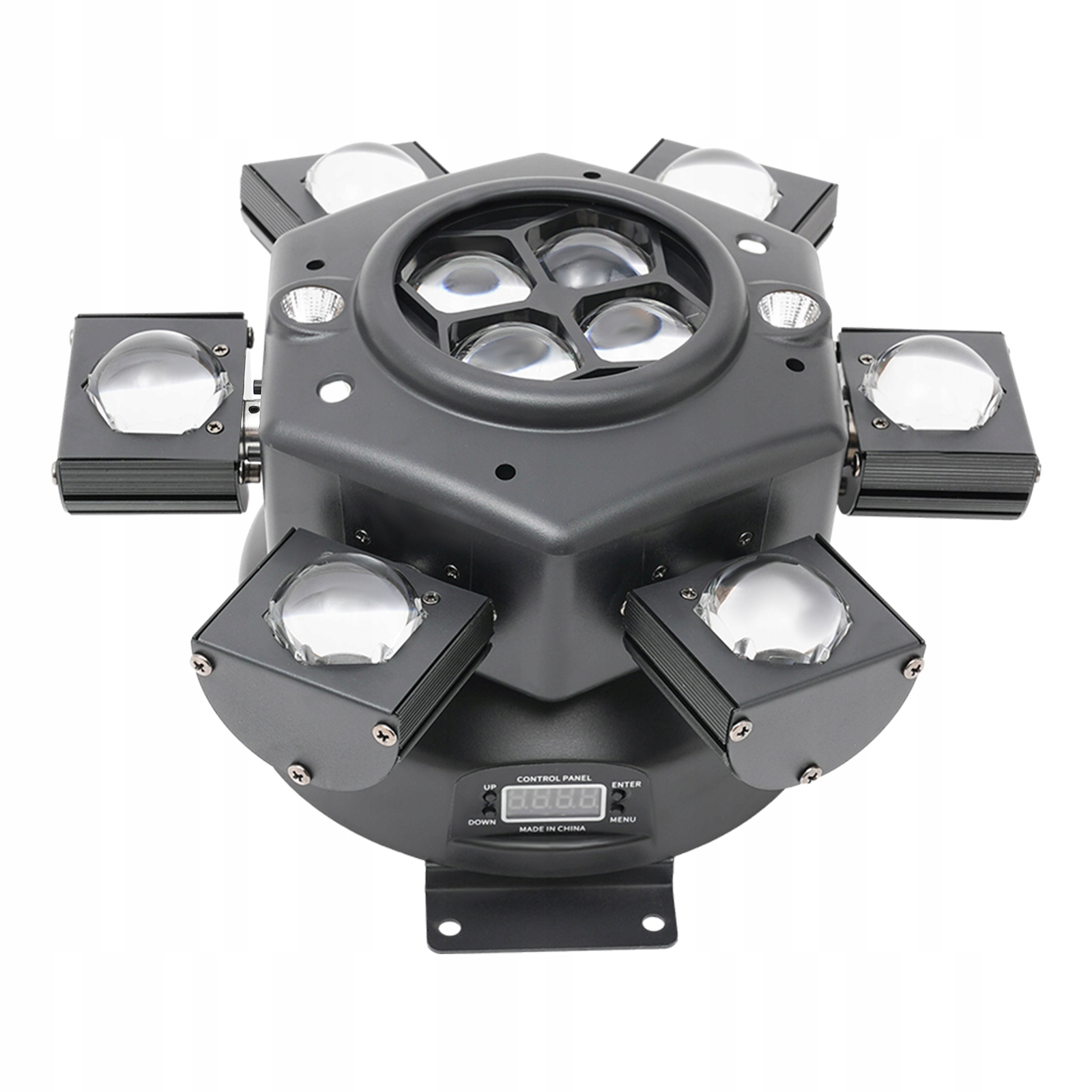 - Гнучке керування: Цей продукт підтримує DMX512, голосове керування, AUTO та master-slave для адаптації до потреб різних місць, роблячи його чутливим до зміни візерунка, кольору та ефекту променя з музикою, створюючи пристрасну вечірку будь-коли та будь-де.