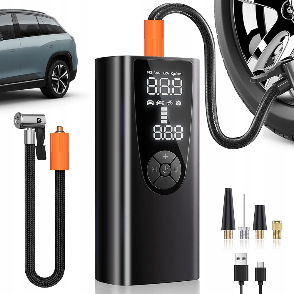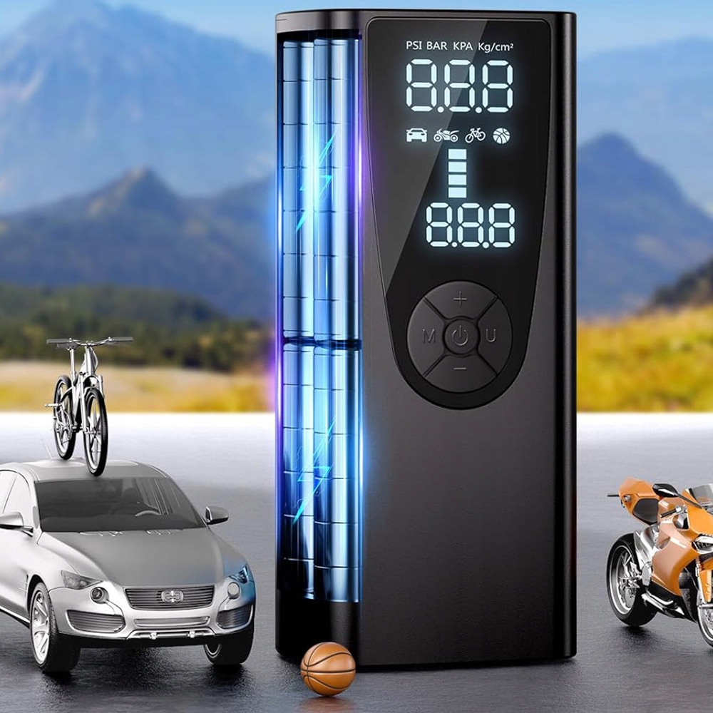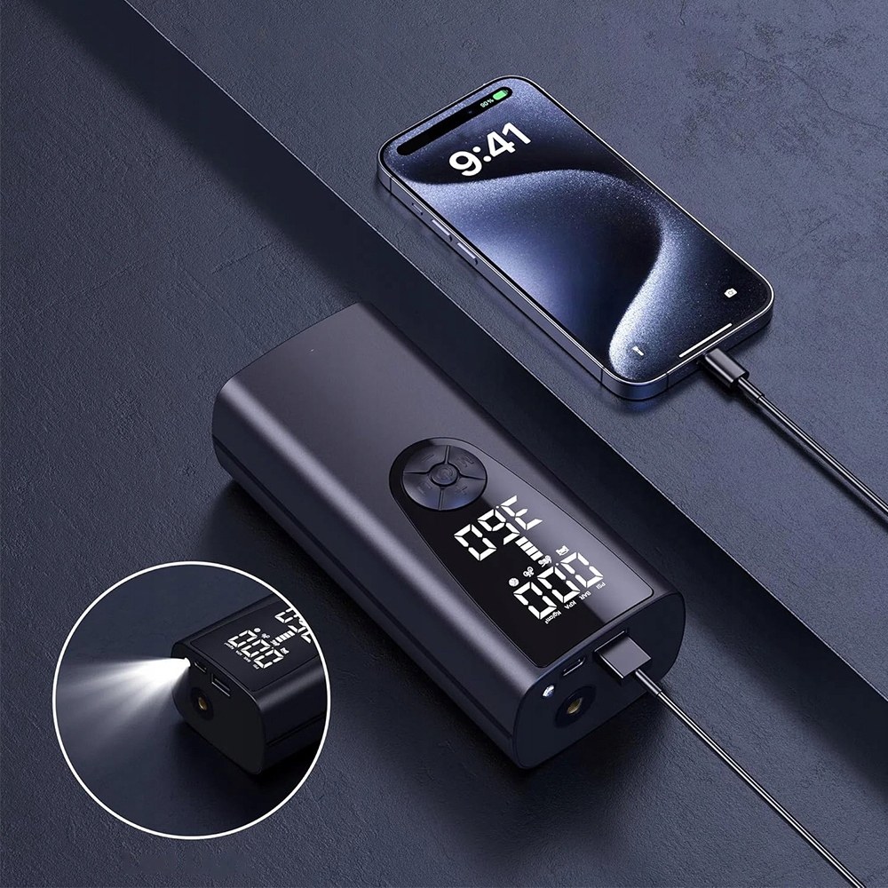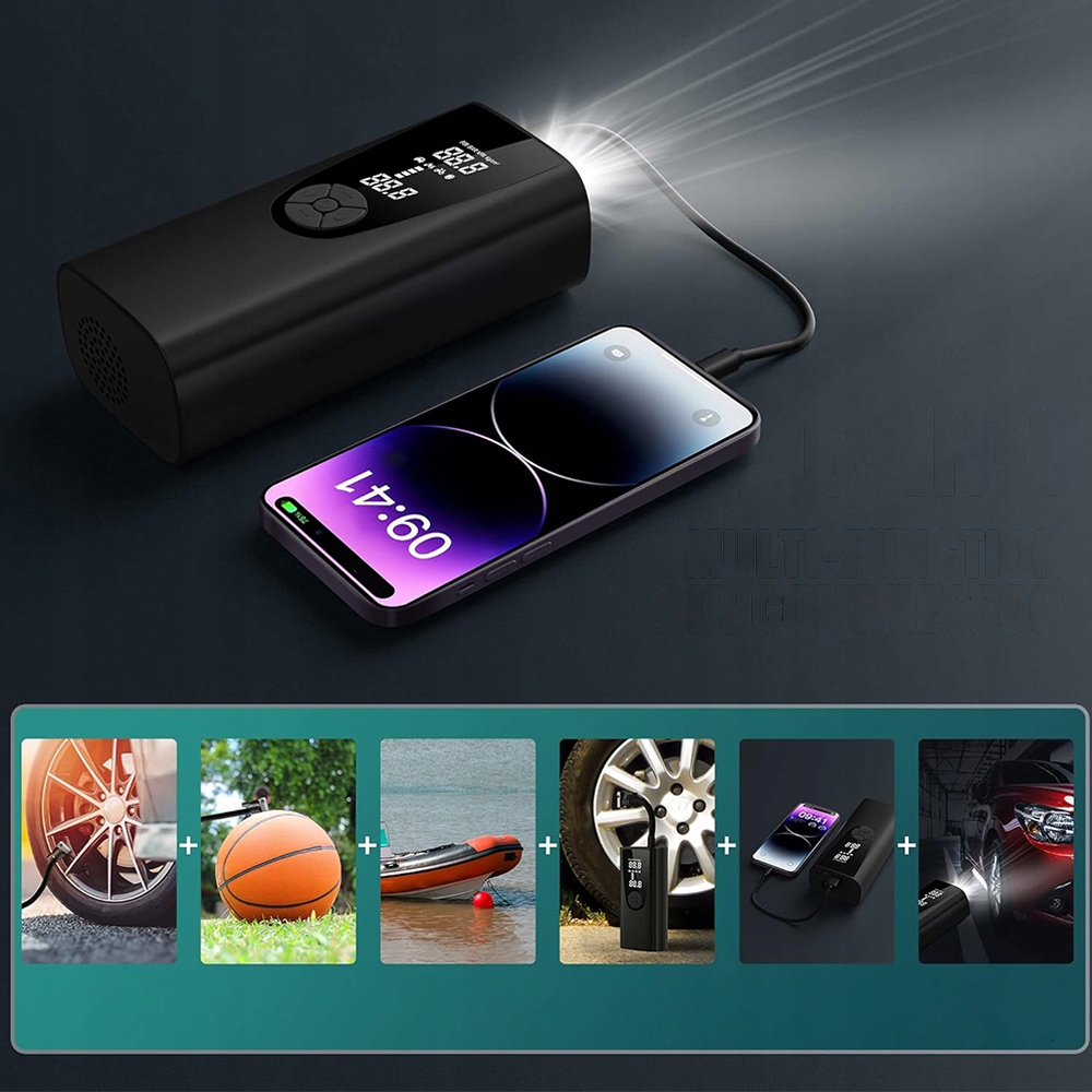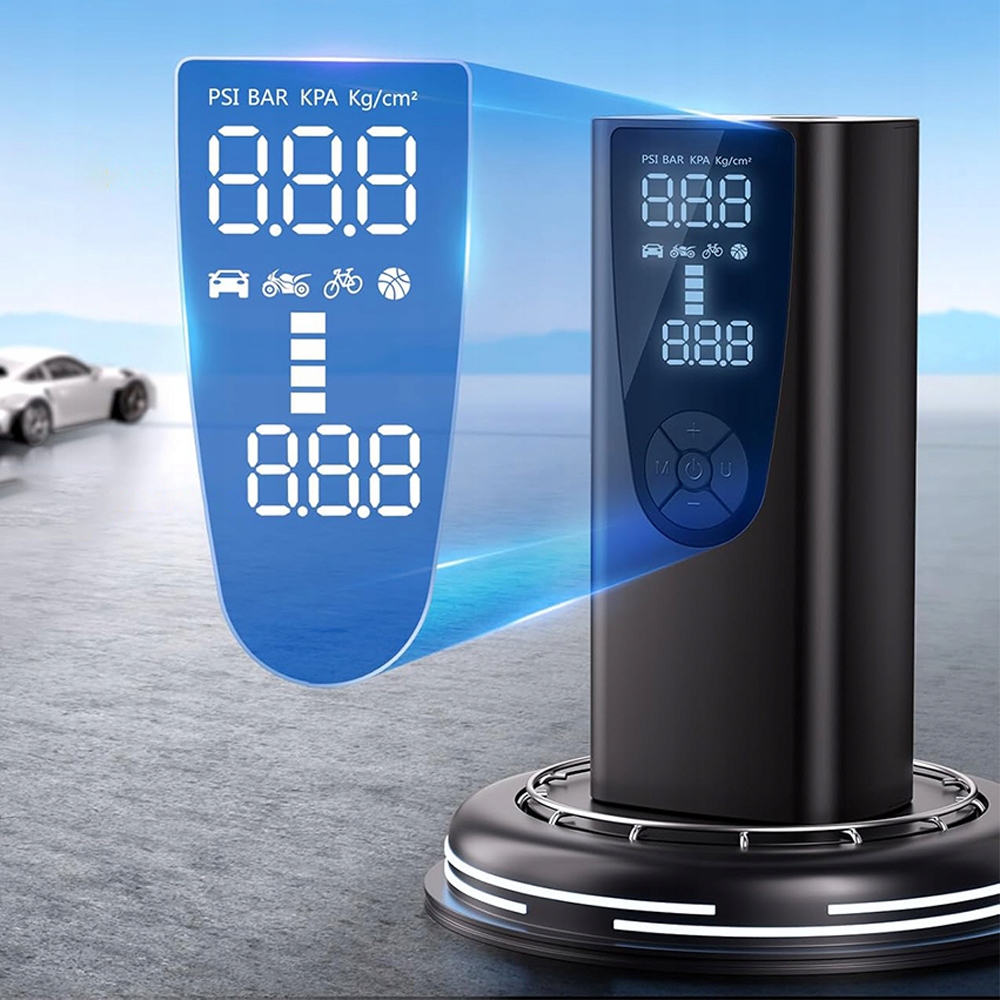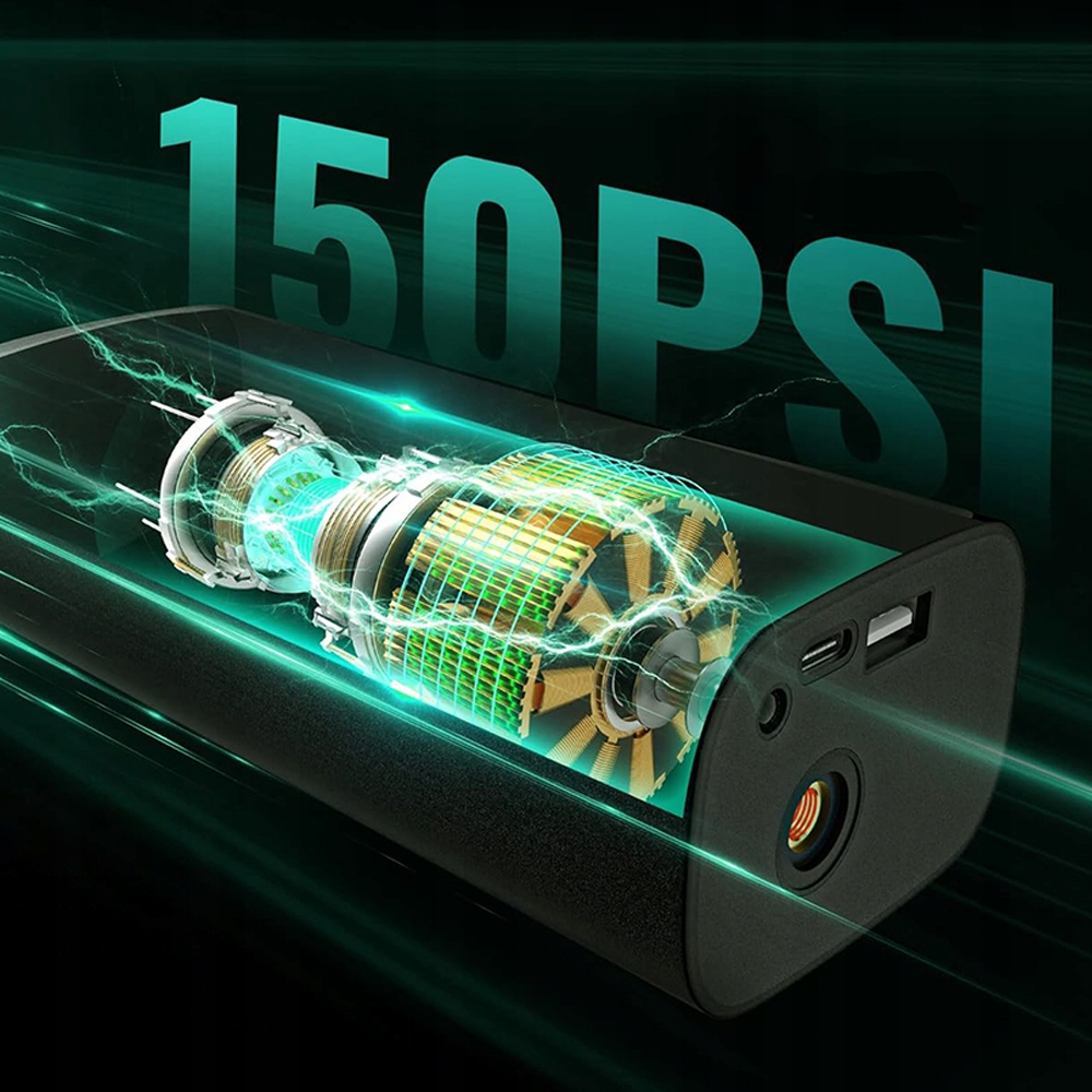 Портативний насос для накачування автомобільних шин досягає максимального тиску 150 PSI і потоку повітря 34 л/хв, що дозволяє швидко накачувати шини автомобілів, мотоциклів, велосипедів, вантажівок і кемперів. Доповнення тиску або екстрене накачування займає всього 3-5 хвилин. Завдяки технології інтелектуальних датчиків процес накачування є точним, усуває ризик надмірного накачування та забезпечує оптимальну безпеку водіння.