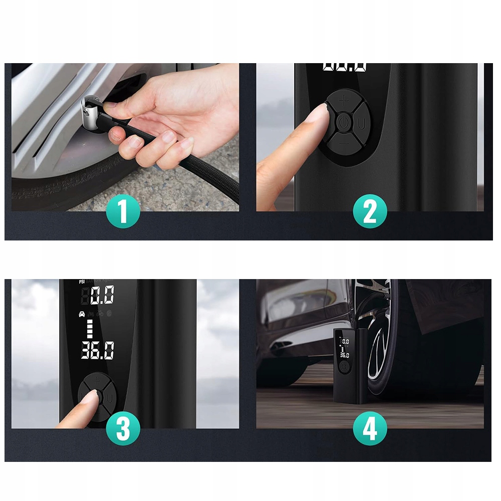Натисніть кнопку «Пуск», і насос автоматично накачає шину до заданого цільового тиску. Коли задане значення буде досягнуто, пристрій автоматично вимкнеться. Насос пропонує 4 інтелектуальні режими накачування (автомобіль, мотоцикл, велосипед, м’яч) і індивідуальний режим, а також 4 одиниці тиску (PSI, бар, кПа, кг/см²) на вибір.