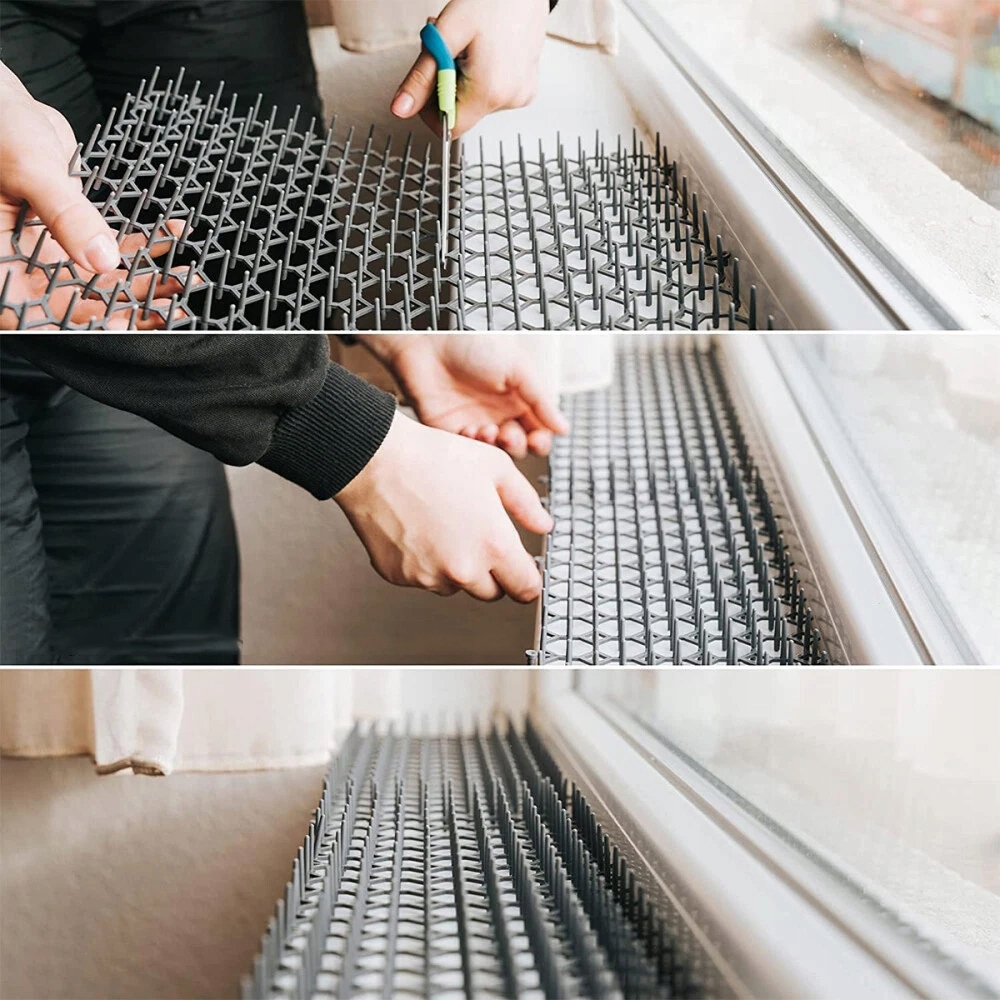 Чотири кути шипованої решітки мають з’єднувальне кільце, садок для відлякування котів можна вільно різати та з’єднувати безпосередньо (горизонтально чи вертикально).