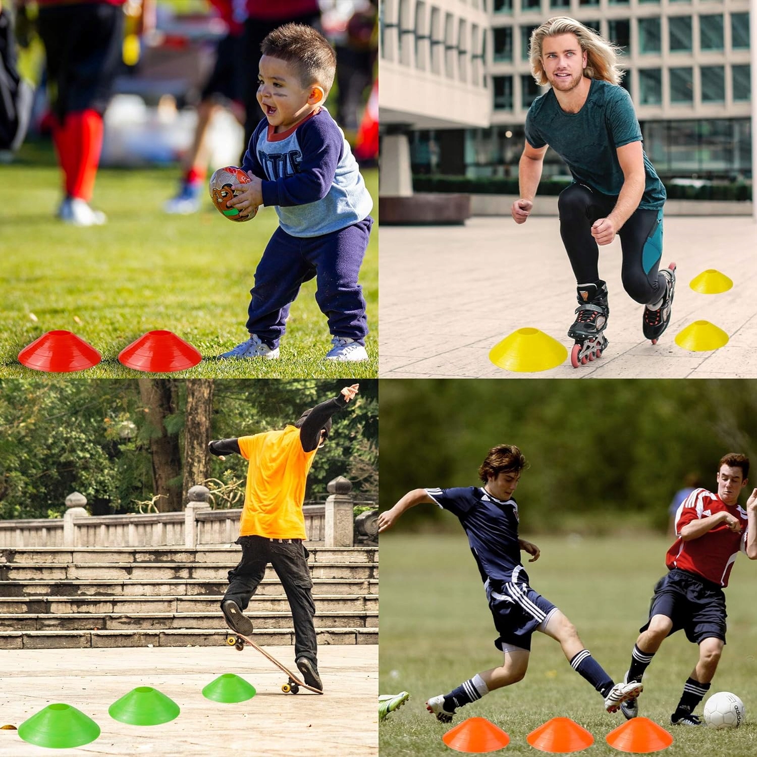 ⚽️Доброї довговічності: обертовий конус можна вільно складати. Має гарну міцність і швидко відновлюється. Він може достатньо витримувати удари ногами, зіткнення та топтання під час напружених тренувань і не легко деформуватися.