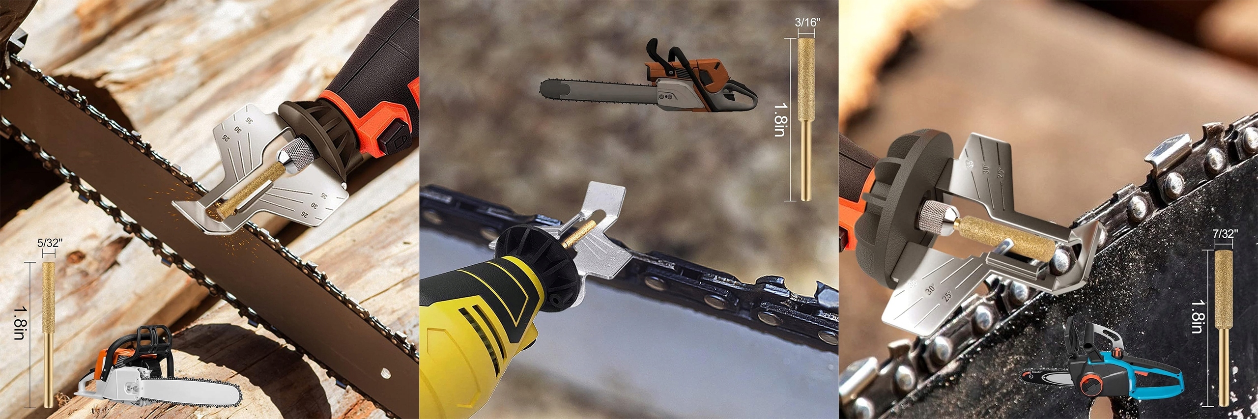 ✔ набір файлів з 3 -мм кріпленням - для кожної викрутки/свердловин, призначених для заточення ланцюга. Завдяки цьому, заточування ланцюга стає швидким та ефективним, що значно покращує комфорт роботи. Це відмінна альтернатива ручним файлам та заточувачам.