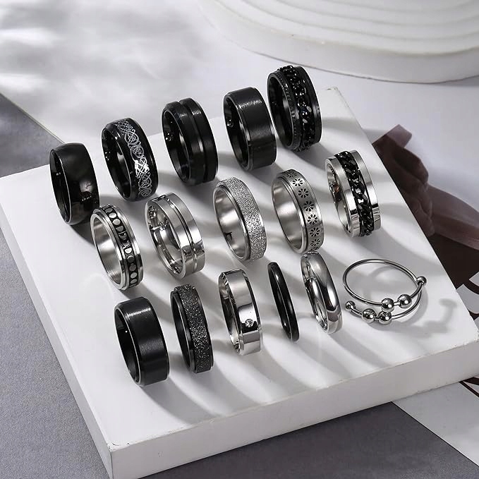 16 ЧОЛОВІЧИХ СТАЛЕВИХ СИГНАЛЬНИХ КІЛЬЦЬ ПОДАРУНКОВИЙ НАБІР ДЛЯ НЬОГО ПАНК