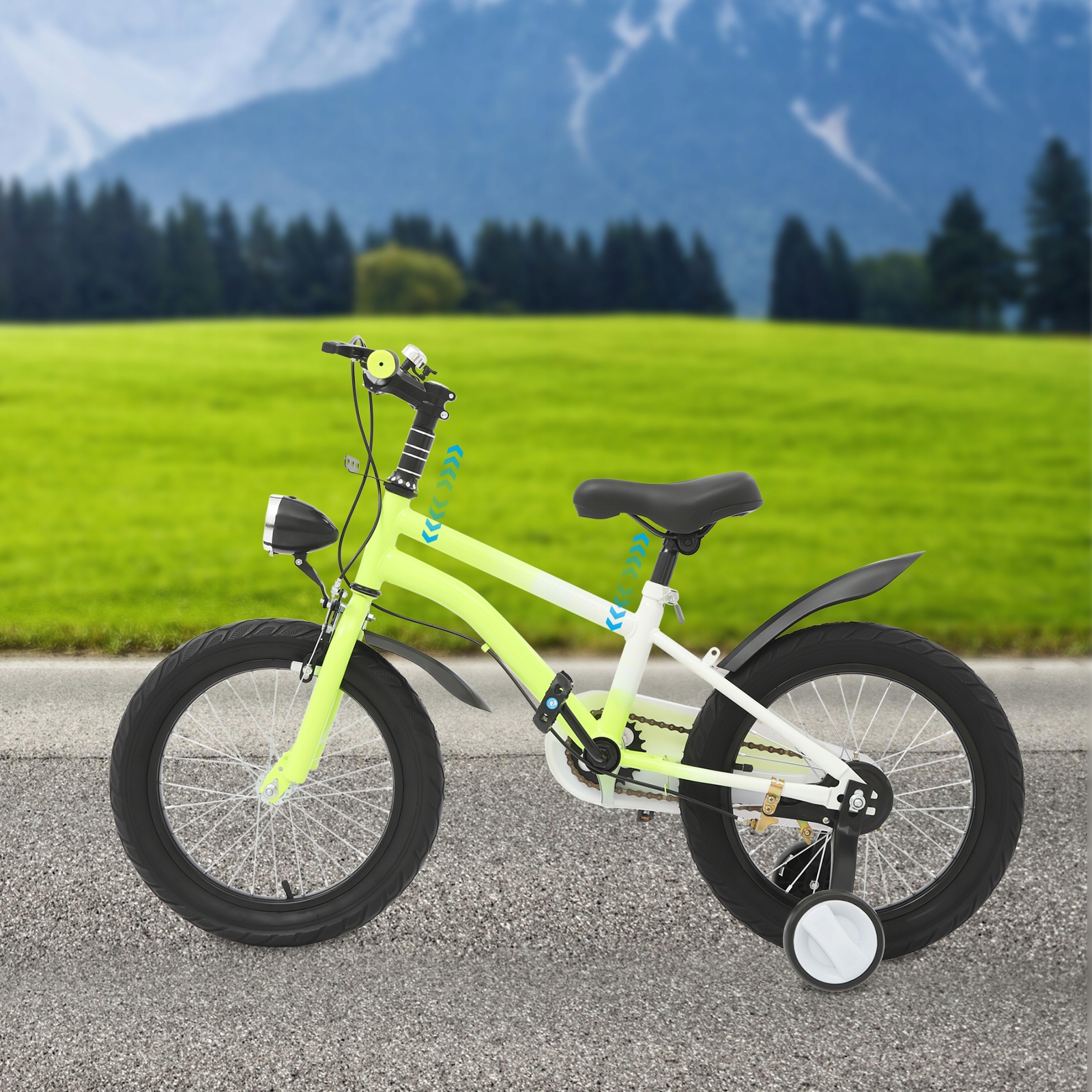 ⛅ ⛅wysokie Безпека: переднє затискач гальма та заднє гальмові гальмо можуть забезпечити ніжну ефективність гальмування. Допоміжні колеса преміум -класу можуть ефективно запобігти перекидання вашої дитини та захисту безпеки дитини. Крім того, він оснащений переднім світлодіодним світлом, завдяки якому діти мають достатню видимість та підвищення безпеки при велосипеді на світанку, сутінках або вночі.