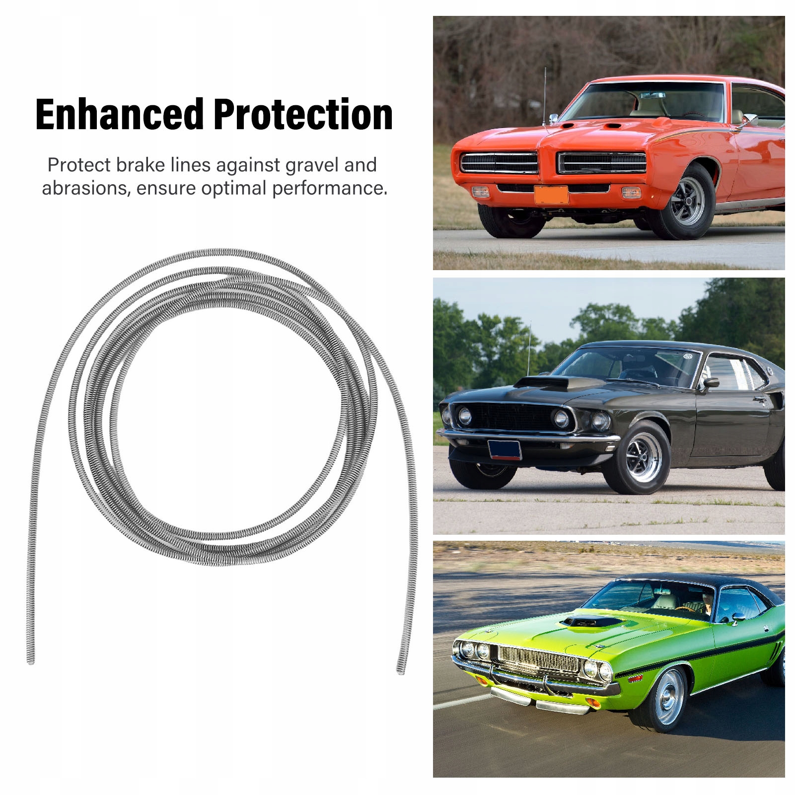 3. Покращений захист: пружина з оцинкованої нержавіючої сталі захищає гальмівні магістралі від гравію та інших пошкоджень, забезпечуючи оптимальну продуктивність і довговічність.