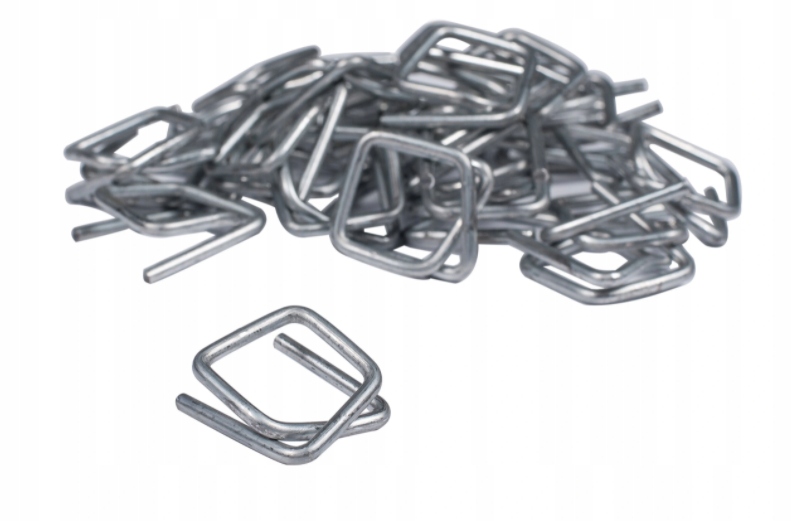 Скоби з оцинкованого дроту використовуються для з'єднання поліпропіленових стрічок. Ширина застібки повинна бути адаптована до ширини стрічки. Застібки з'єднуються за допомогою ПП стрічки і натягувача.