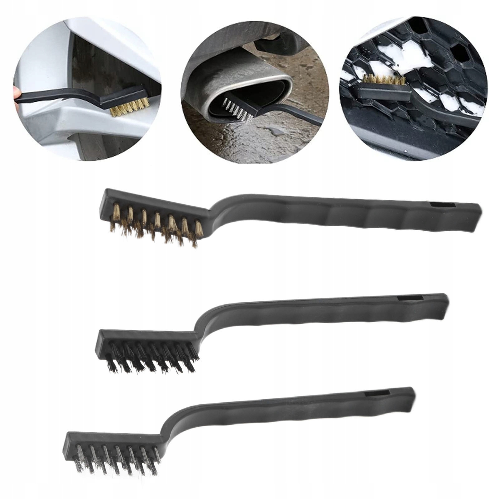 1. Подвійні щітки для очищення кондиціонерів, 5 шт. Кусті волокна в різних розмірах для очищення інтер'єру автомобіля, колеса для сильніших та трьох більш жорстких дротяних щіток для двигунів автомобілів.