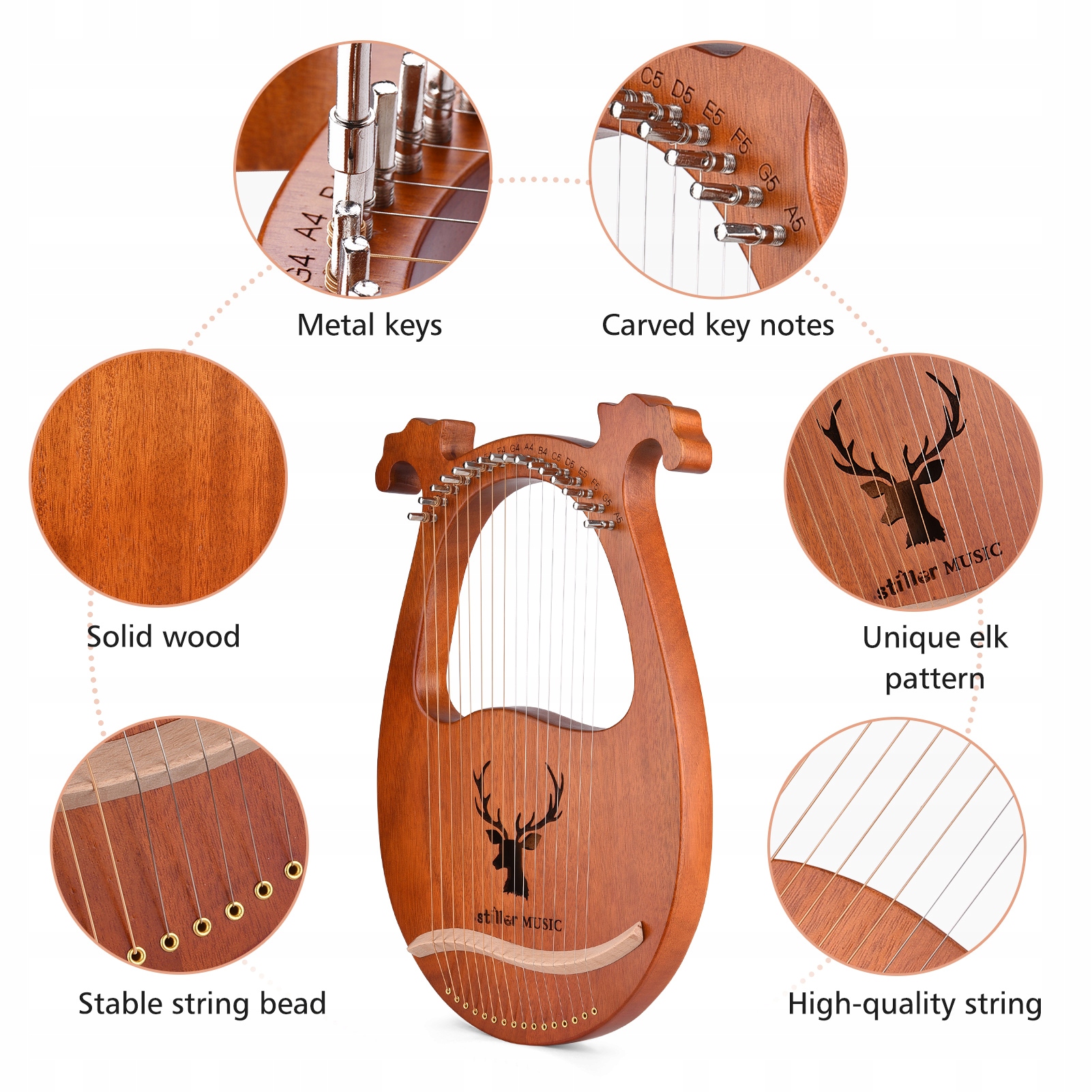 16-струнна ліра арфа лось візерунок масивна деревина струнний інструмент SV