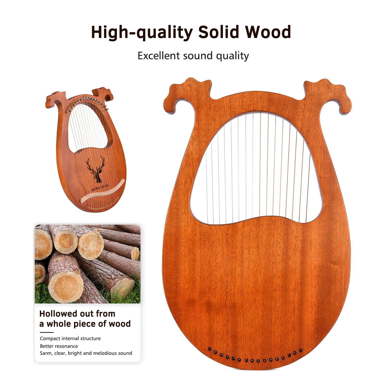 16-струнний масивний дерев'яний інструмент KQ, ліра, арфа, візерунок з лося