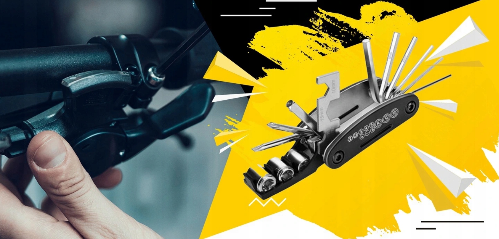 Повний набір інструментів, що складається з 16 найважливіших елементів для обслуговування велосипеда. Все було закрито в компактному кишеньковому ножі.