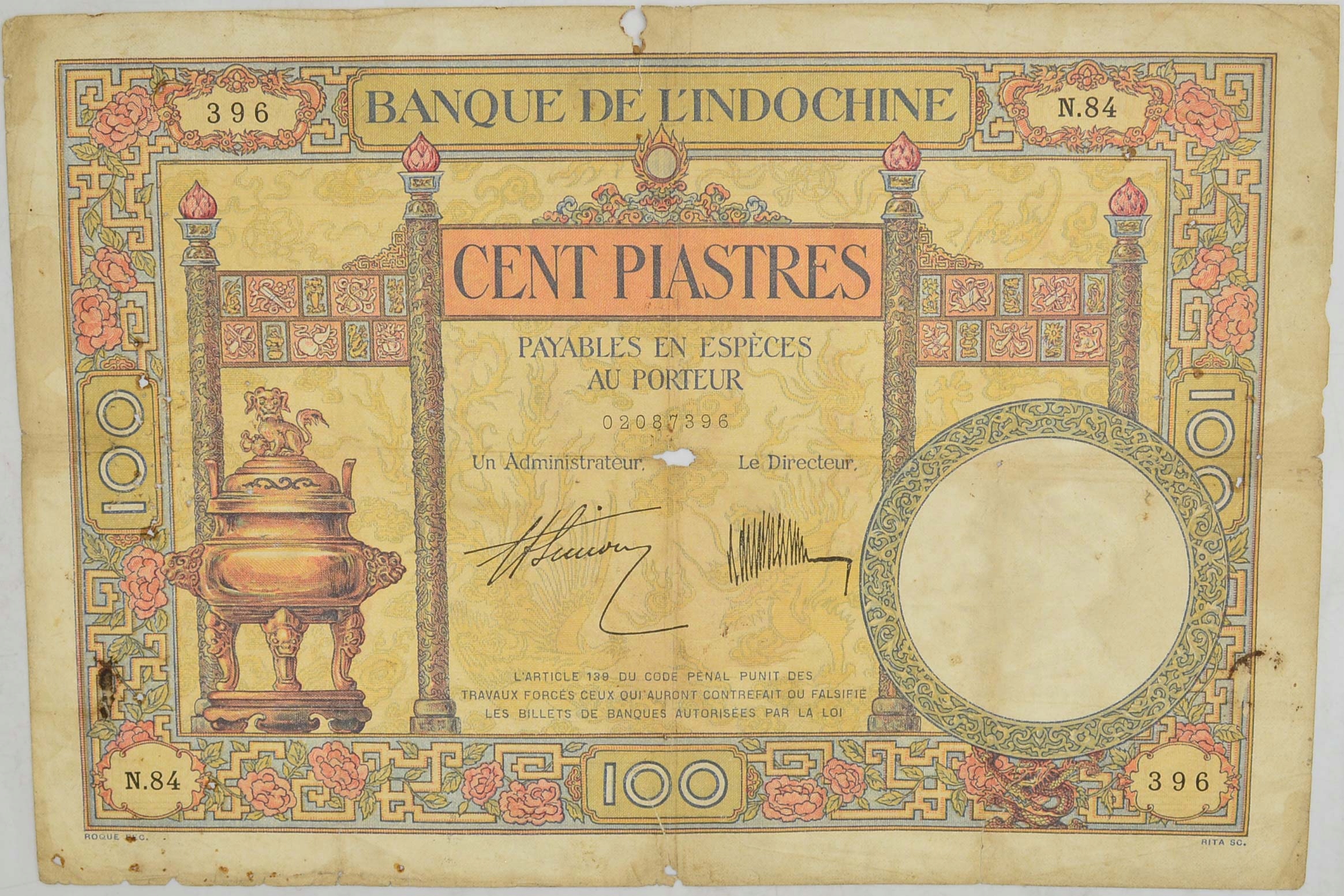16.aj.Indochiny Fr., 100 Piastrów 1925-1939 rzadki