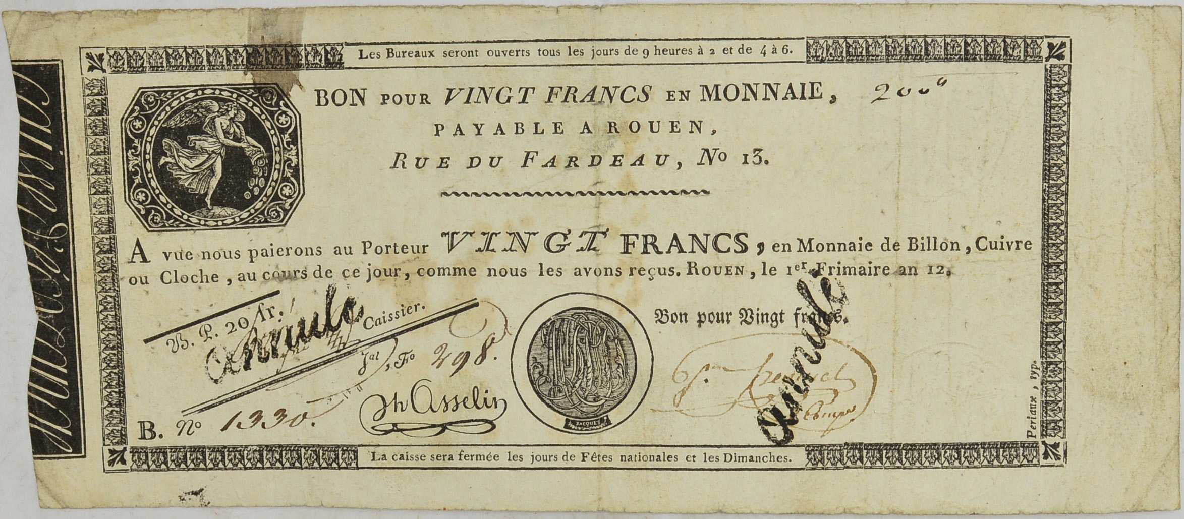 16.db.Francja , Руан, 20 франків ND рідко, St.3+