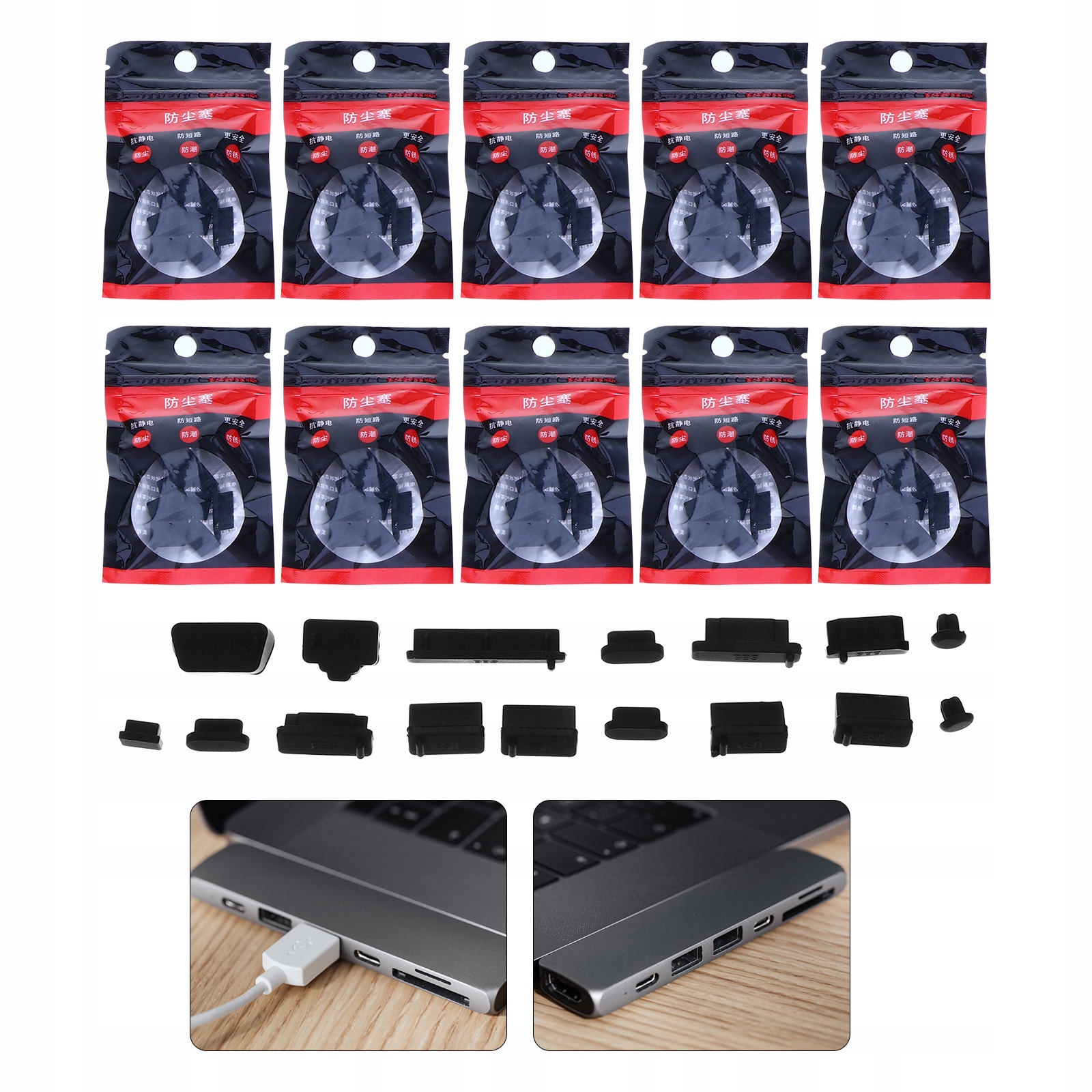 160 ШТ. СИЛІКОНОВІ ЗАКЛЮЧКИ ДЛЯ РОЗ'ЄМІВ НОУТБУКУ, ЧОРНІ