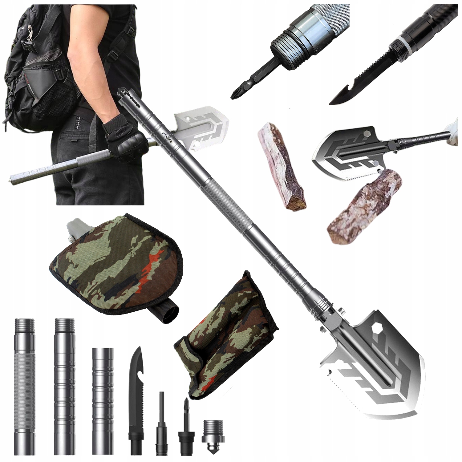 Завдяки компактному розмірах та прикріпленому обкладинці, сапер можна легко зберігати та транспортувати. Він складається з чотирьох основних елементів, які підключаються до інструменту до 76 см завдовжки. Він легкий, але в той же час твердий завдяки структурі алюмінію та сталі, що робить його ідеальним для виживання або домашнього використання.