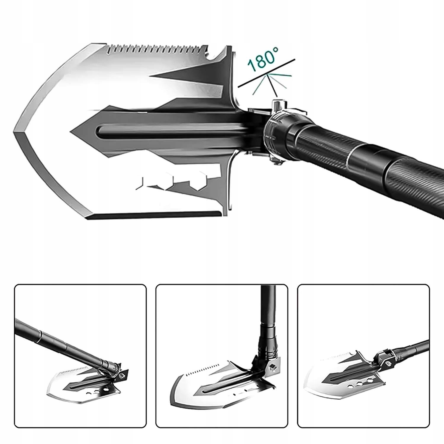 лезо, виготовлене з нержавіючої сталі 3CR13, не тільки забезпечує високу стійкість до корозії, але й для інших видів пошкодження. Це важко, але в той же час гнучкий, що має вирішальне значення для інтенсивного використання. Регулювання кута леза дозволяє йому легко адаптуватися до різних завдань, від копання, через різання, до деревообробки.