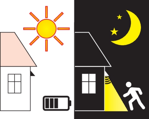 - вдень, коли інтенсивність денного світла достатня, світильник не вмикається навіть при русі виявлено, у цей час сонячна панель заряджає літій-іонний акумулятор ємністю 900 мАг