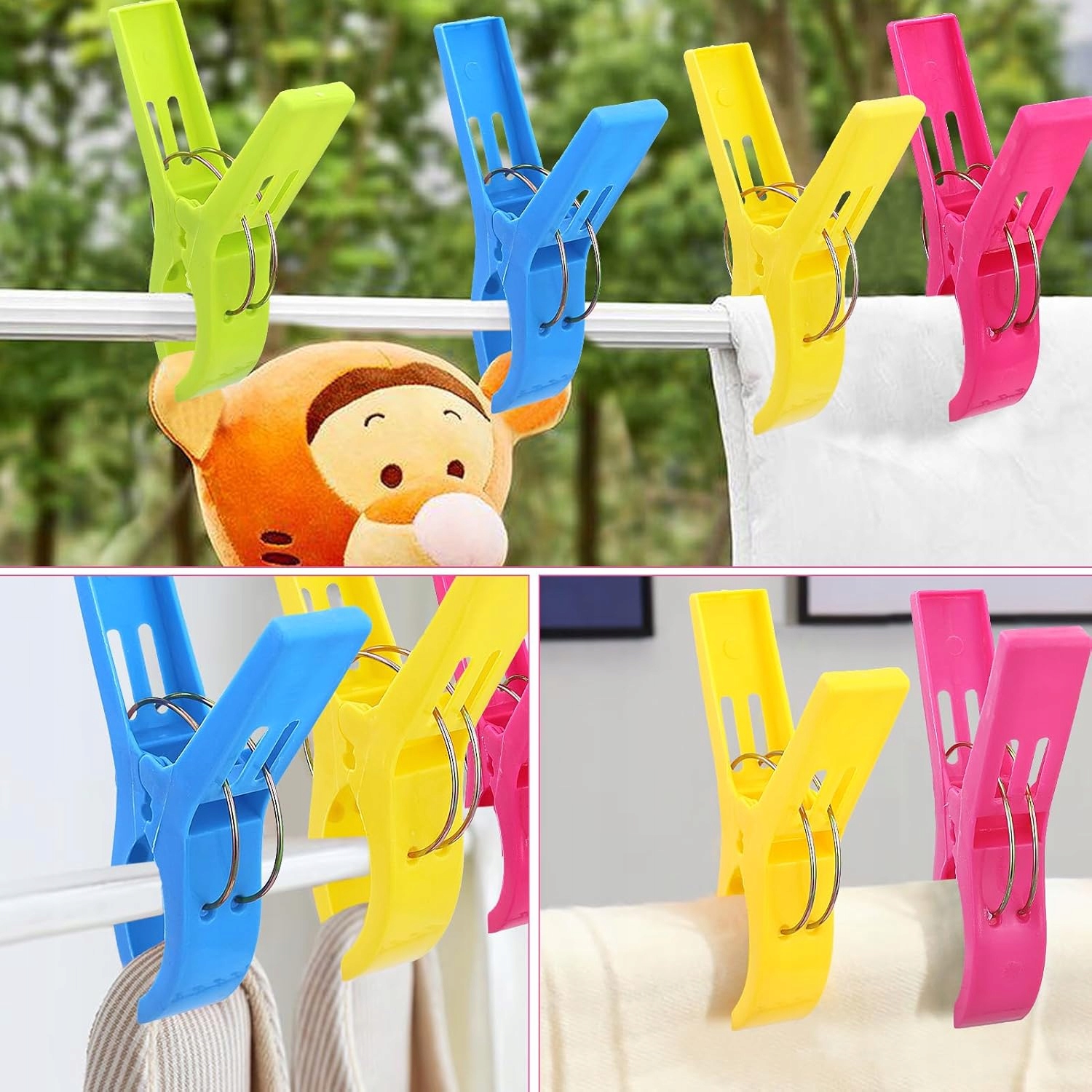 - Універсальне використання: ідеально підходить для кріплення рушників до шезлонгів, шезлонгів, стільців біля басейну; або для кріплення ковдр, простирадл, штор чи одягу.