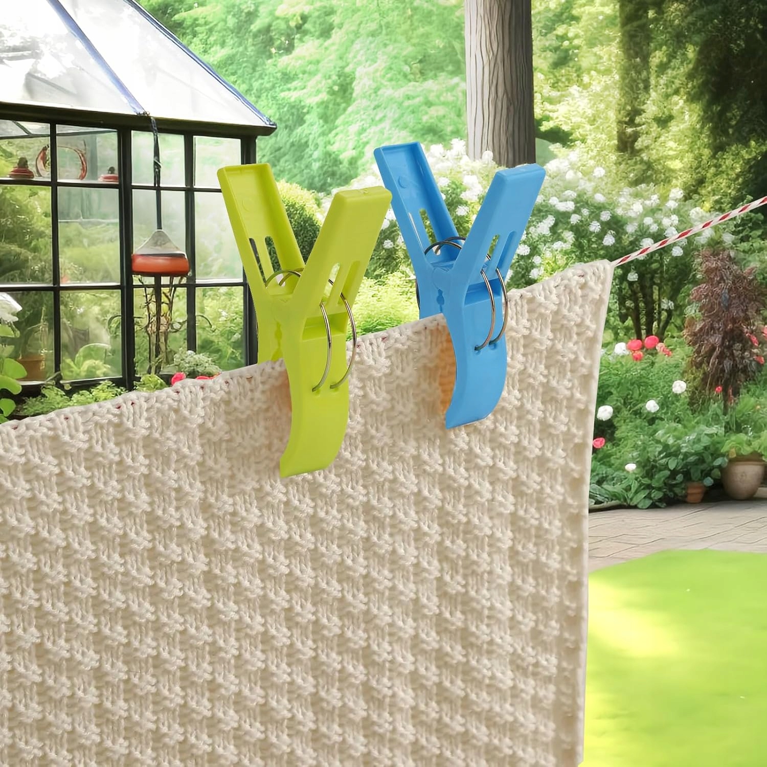 - Мінімалістичний і міцний дизайн: Легкий, міцний, портативний затиск для пляжних рушників. Міцні кліпси для ковдри з вітрозахисним і протиковзким дизайном. Міцні губки та пружини забезпечують чудову силу утримання.