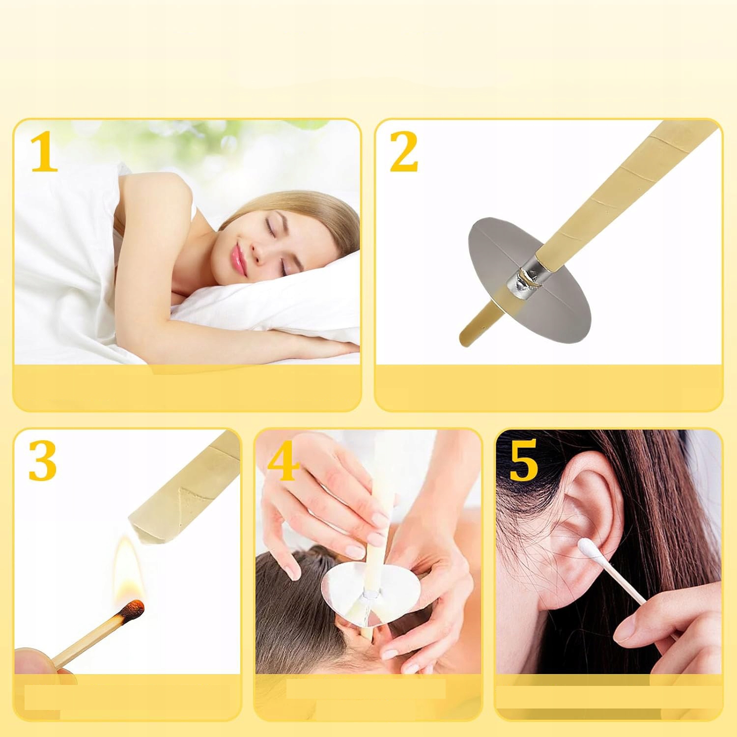 Ця порожниста конічна вушна свічка проста у використанні. Ляжте зручно в ліжко із закритими очима. Вставте свічку в слуховий прохід, запаліть її, а потім вертикально і рівномірно розмістіть її біля вуха. На завершення обережно протріть вухо ватним тампоном.