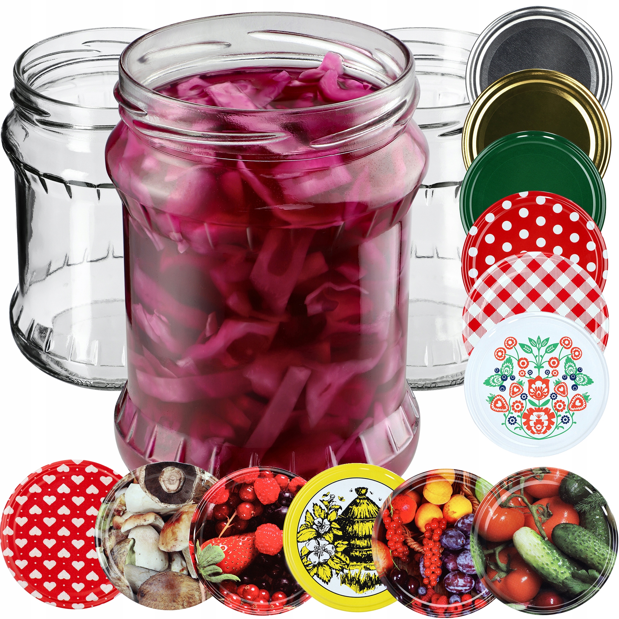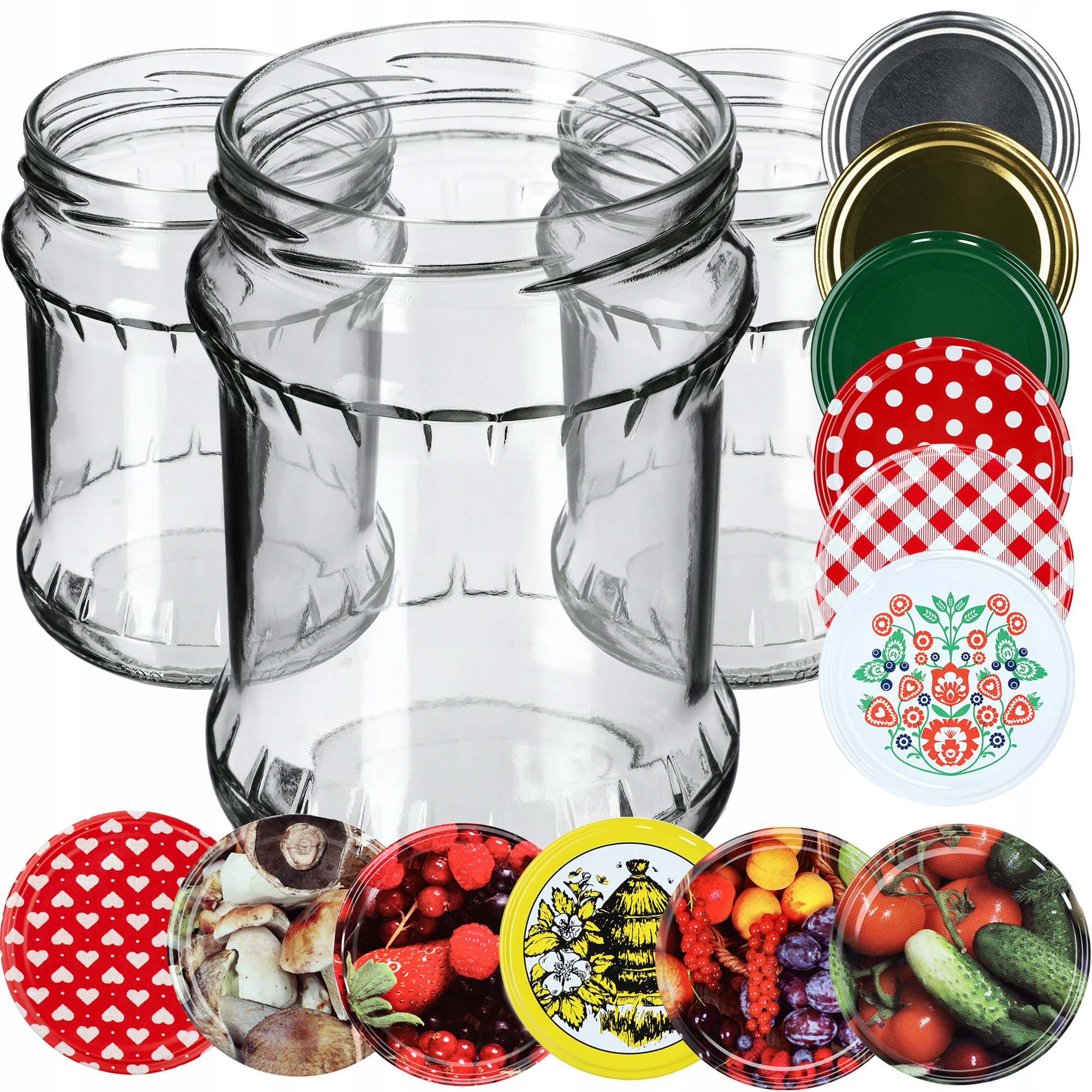 ✅ РІЗНІ - ми пропонуємо скляні банки в кількості 8, 16, 24 і 48 штук. У нашій пропозиції є банки з одноколірними кришками або кришками з малюнком (з нанесеними на них мотивами овочів, фруктів та бджільництва).