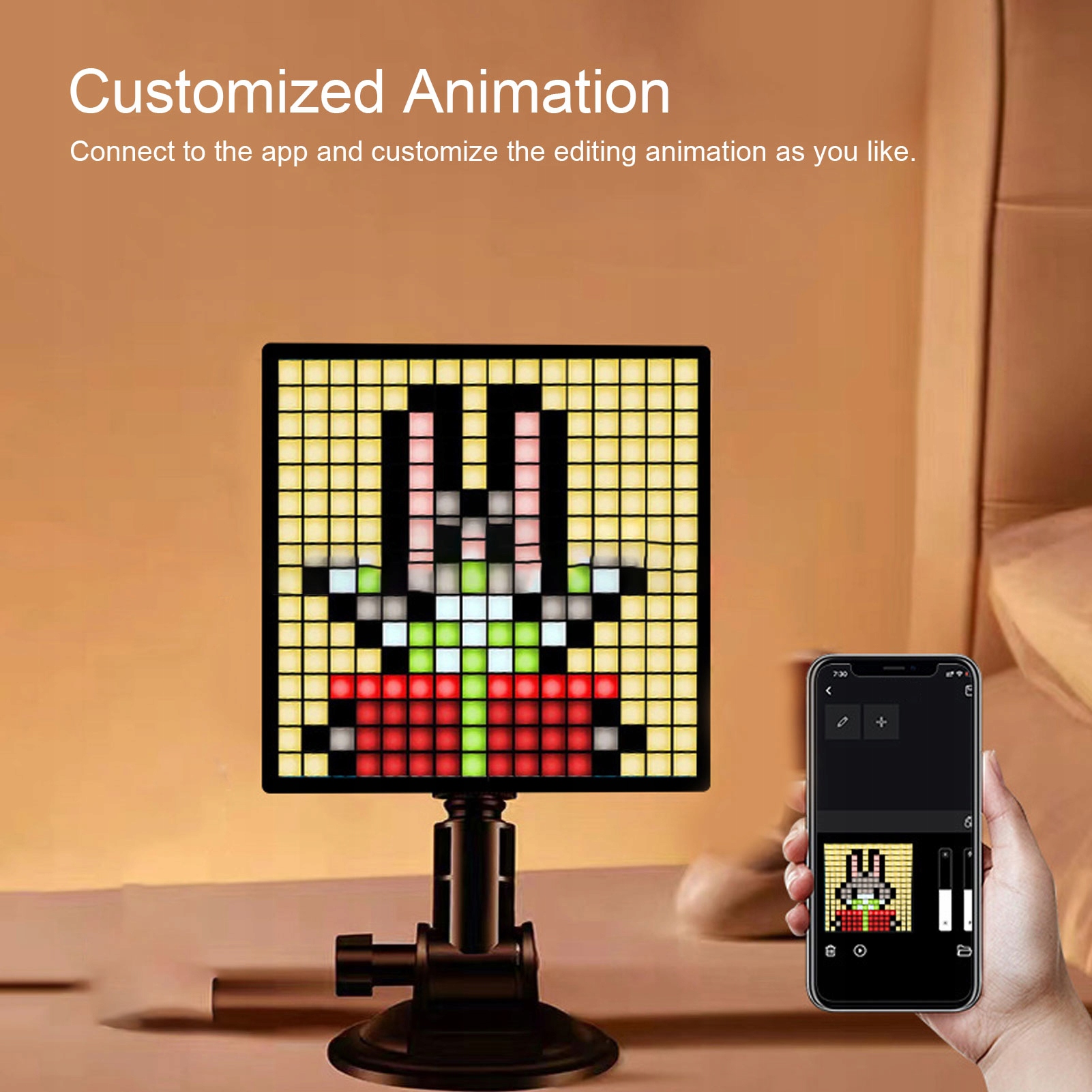 2. Простий у використанні: цей програмований піксельний дисплей підключається та працює, що робить встановлення легким. Він постачається з підставкою для зручного розміщення на столі та двома отворами для підвішування для легкого кріплення на стіні, що дає вам гнучкі варіанти відображення.