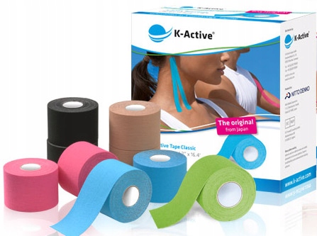 K-Active Tape — це гнучка клейка стрічка, що складається з тканини бавовни та акрилу клейовийшар, який активується втиранням після нанесення. Стрічка K-Active використана є мало подразнює клей.