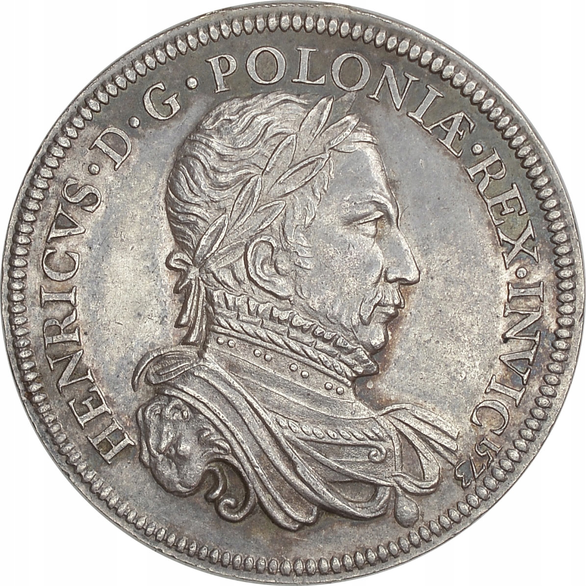 - Опис: медаль, викарбувана у Франції з нагоди обрання Генріха королем Речі Посполитої. Паризький монетний двір (Ольв'є Обен). Літ.: H.Cz.591; Raczyński 39. Друк ХІХ ст. Вухо видалено. Діаметр: приблизно 30 мм.