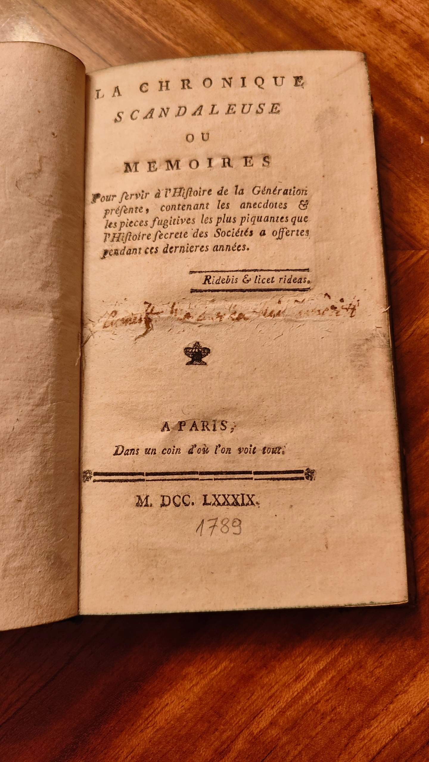 1789. LA CHRONIQUE SCANDALEUSE OU MEMOIRES.