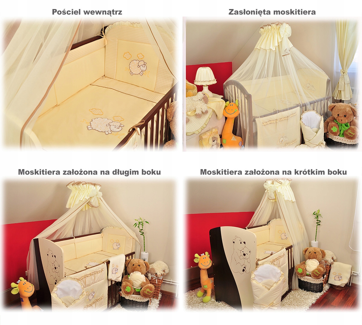 8. Шифонова москітна сітка 480 х 160 см - покриває все ліжко, захищає малюка від різних комах і виглядає красиво. Відповідна довжина і ширина захищають все ліжко. Його можна носити як на довгі, так і на короткі боки.Виготовлений з ніжного шифону, оздоблений обробкою в колір. Верх москітної сітки оздоблений додатковим шаром бавовняної тканини з тієї ж тканини, що й постільна білизна