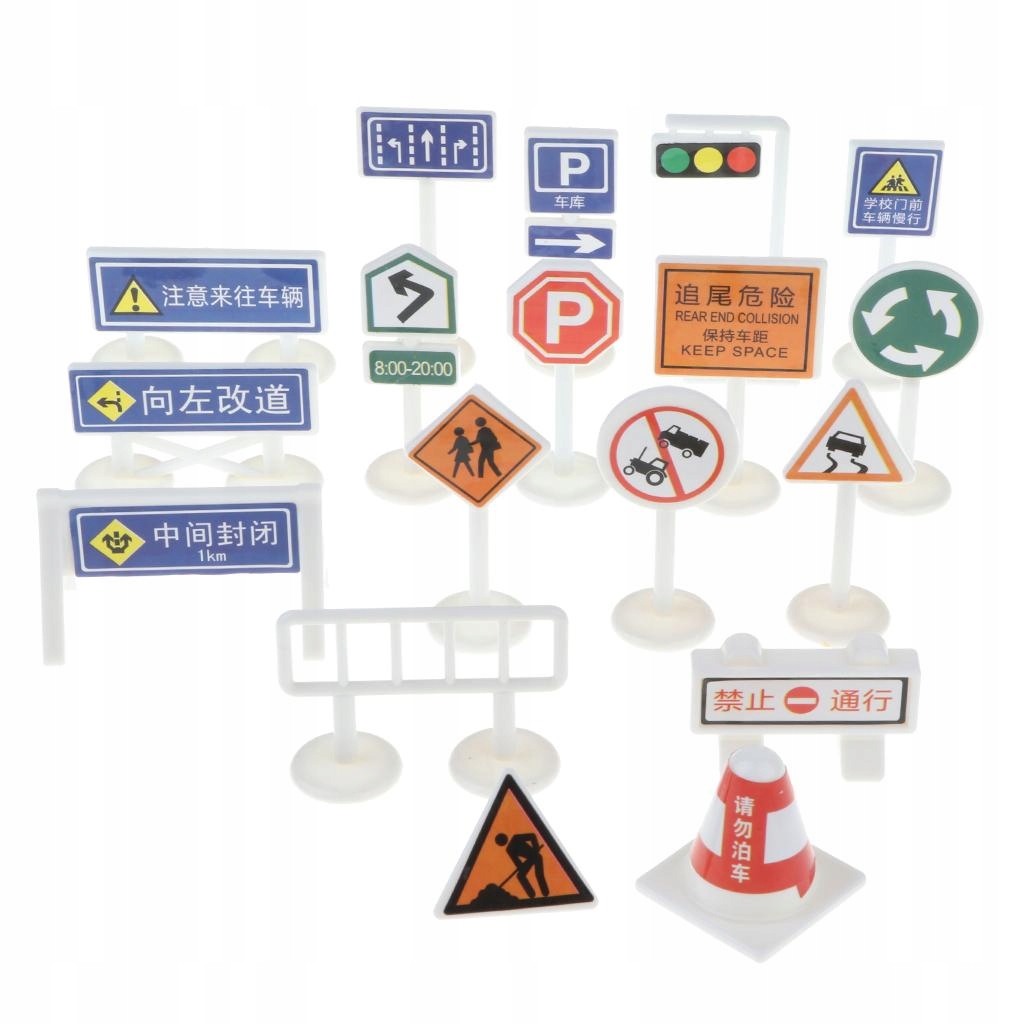 18-częściowy zestaw zabawek z blokami znaków drogowych